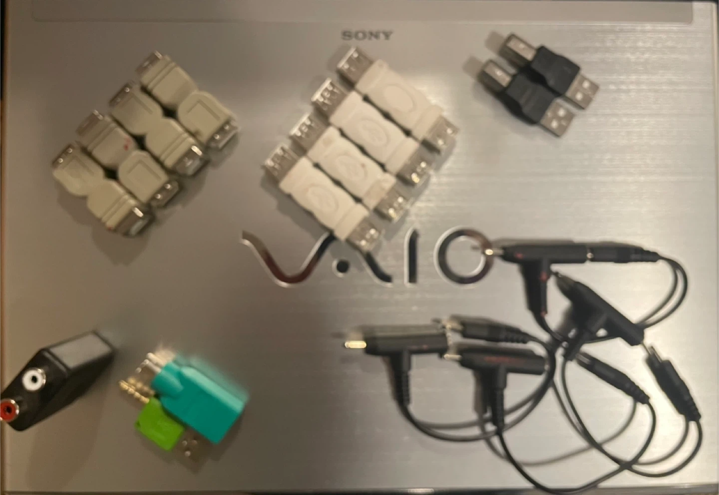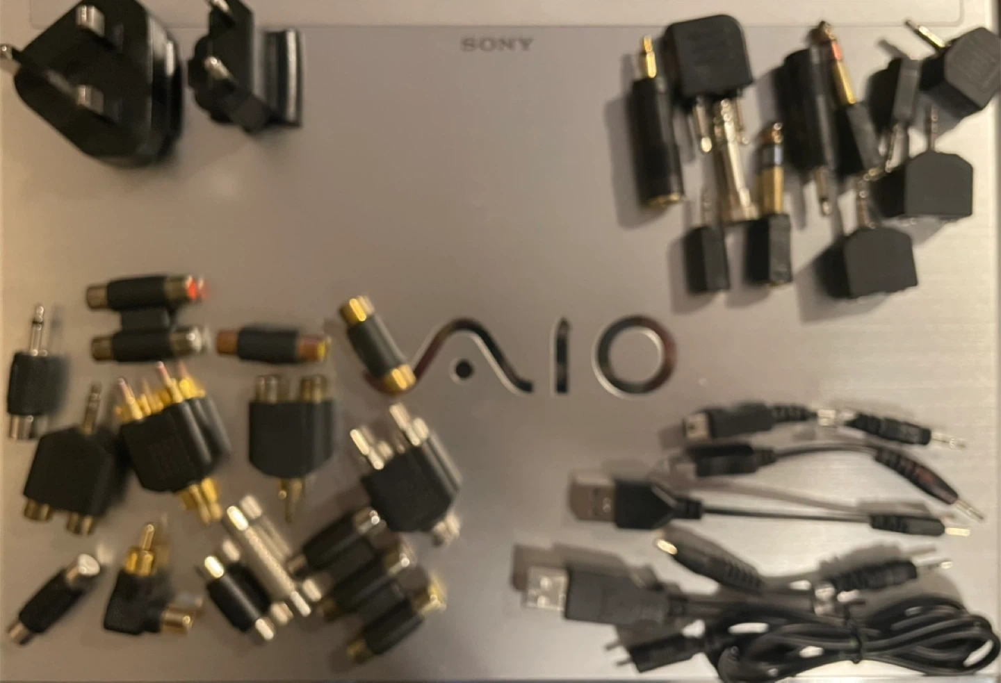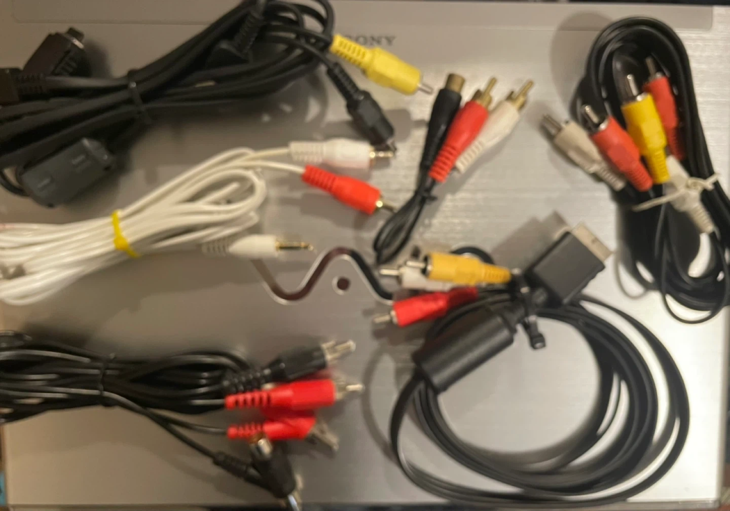 This is a collection of various audio and video cables, including HDMI, VGA, RCA, and adapter cables. These cables are used to connect different electronic devices for sound and picture transmission. They're great for setting up home theatre systems or connecting gaming consoles.