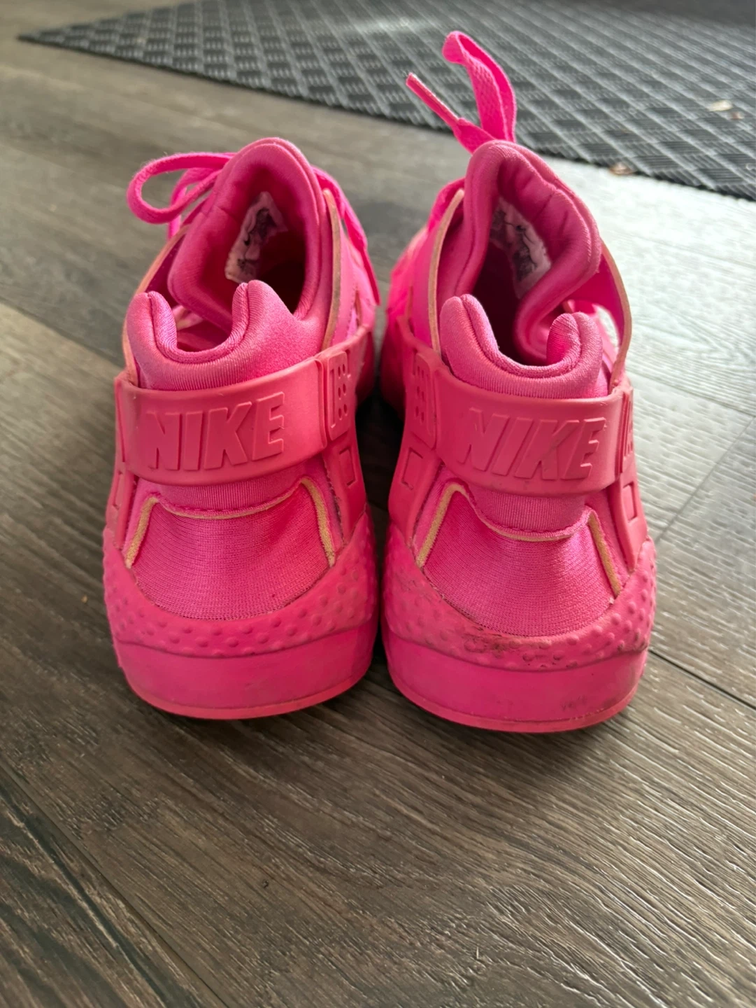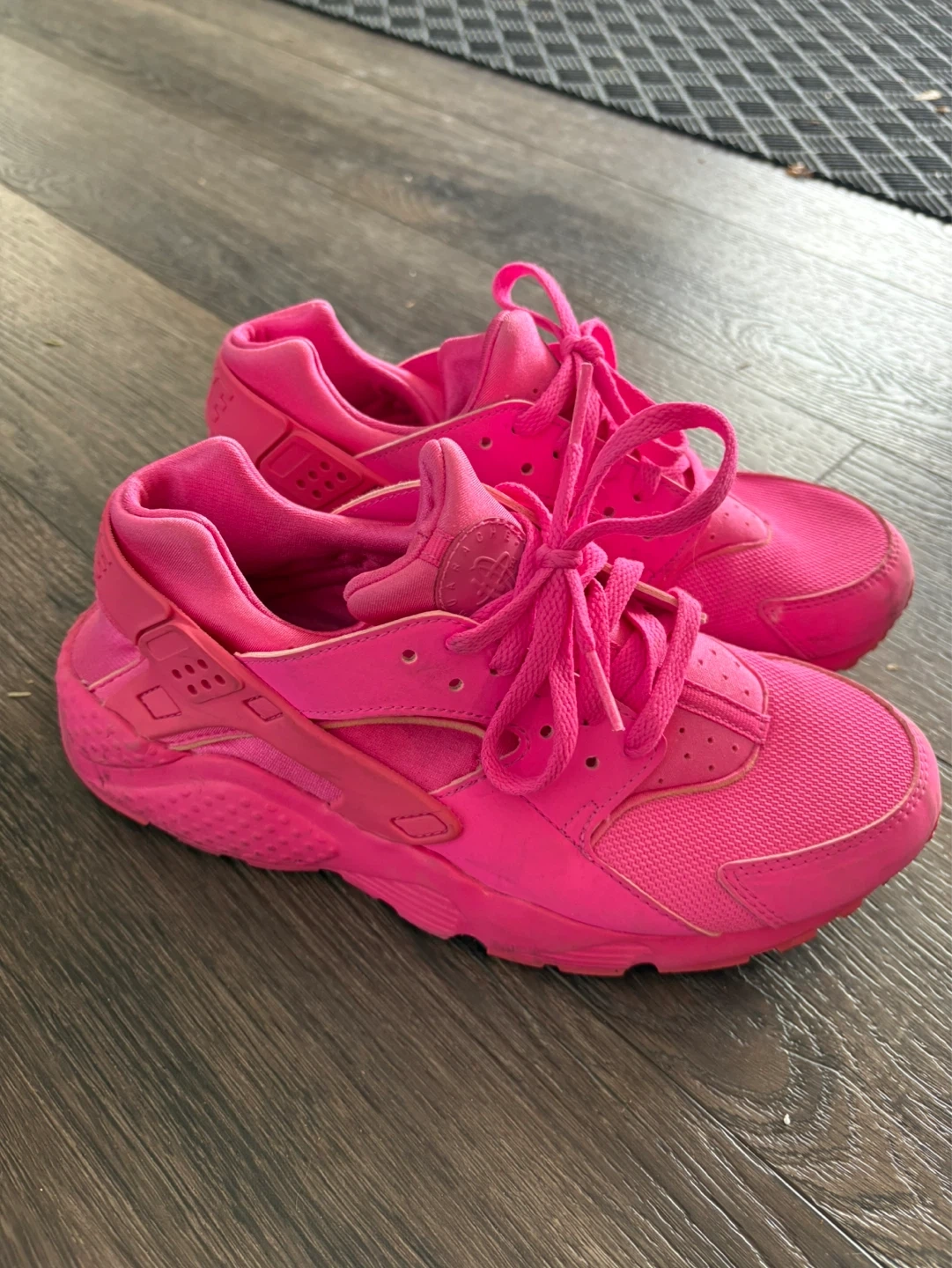 These bright pink Nike Air Huarache shoes are a vibrant addition to any sneaker collection. They're made with a comfortable, breathable mesh and rubber sole. Perfect for everyday wear