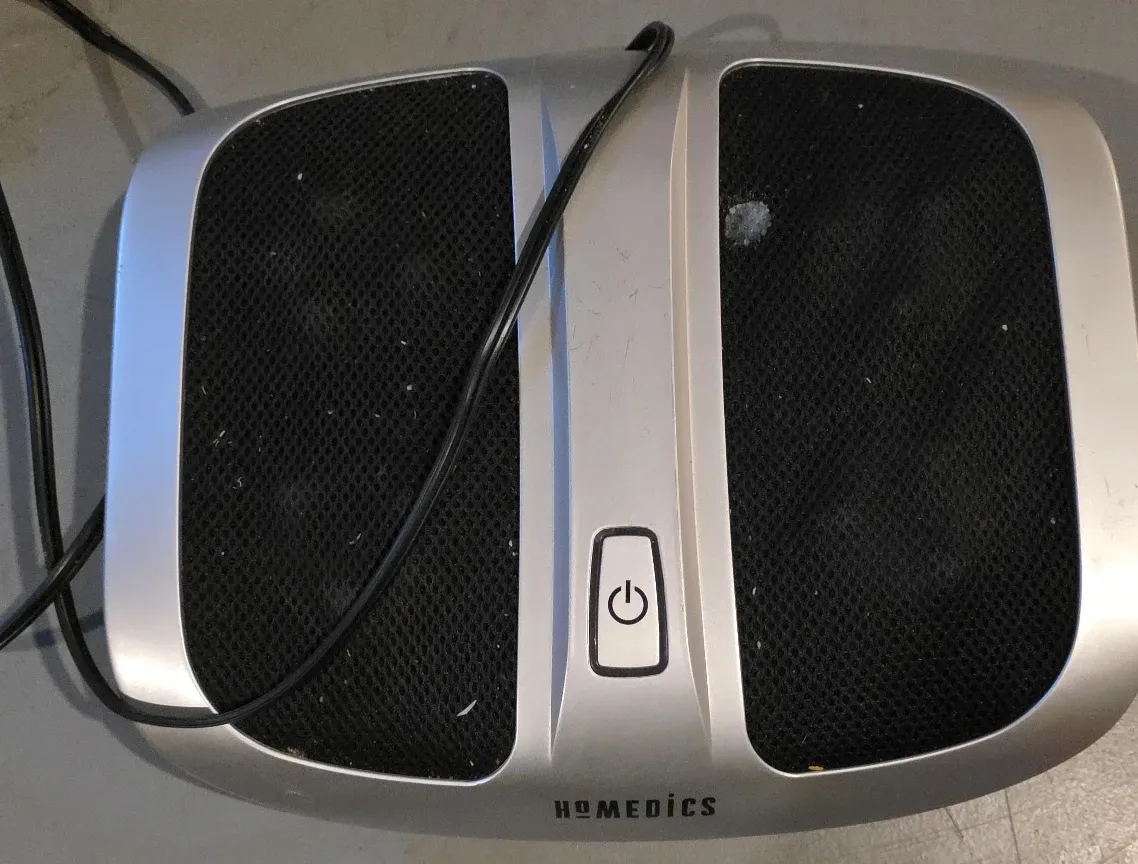 Selling a HoMedics foot massager. It's in good working condition and ready to help you relax after a long day. It has a power button in the middle. There are some signs of use.
