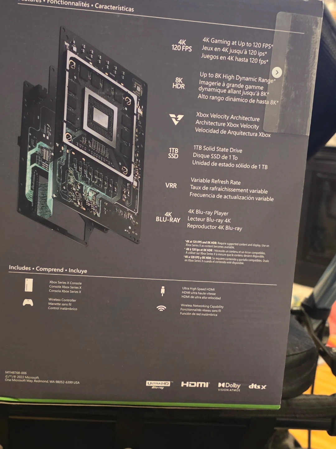 Xbox Series X console with 1TB SSD. Includes wireless controller. Supports 4K Gaming at up to 120 FPS. It features an Ultra High Speed HDMI and VRR. Brand New never used.