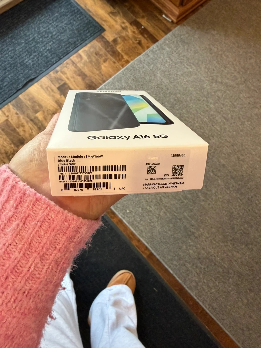 Samsung Galaxy A16 5G smartphone in Black. It's the 128GB/Go model. Comes in original box.