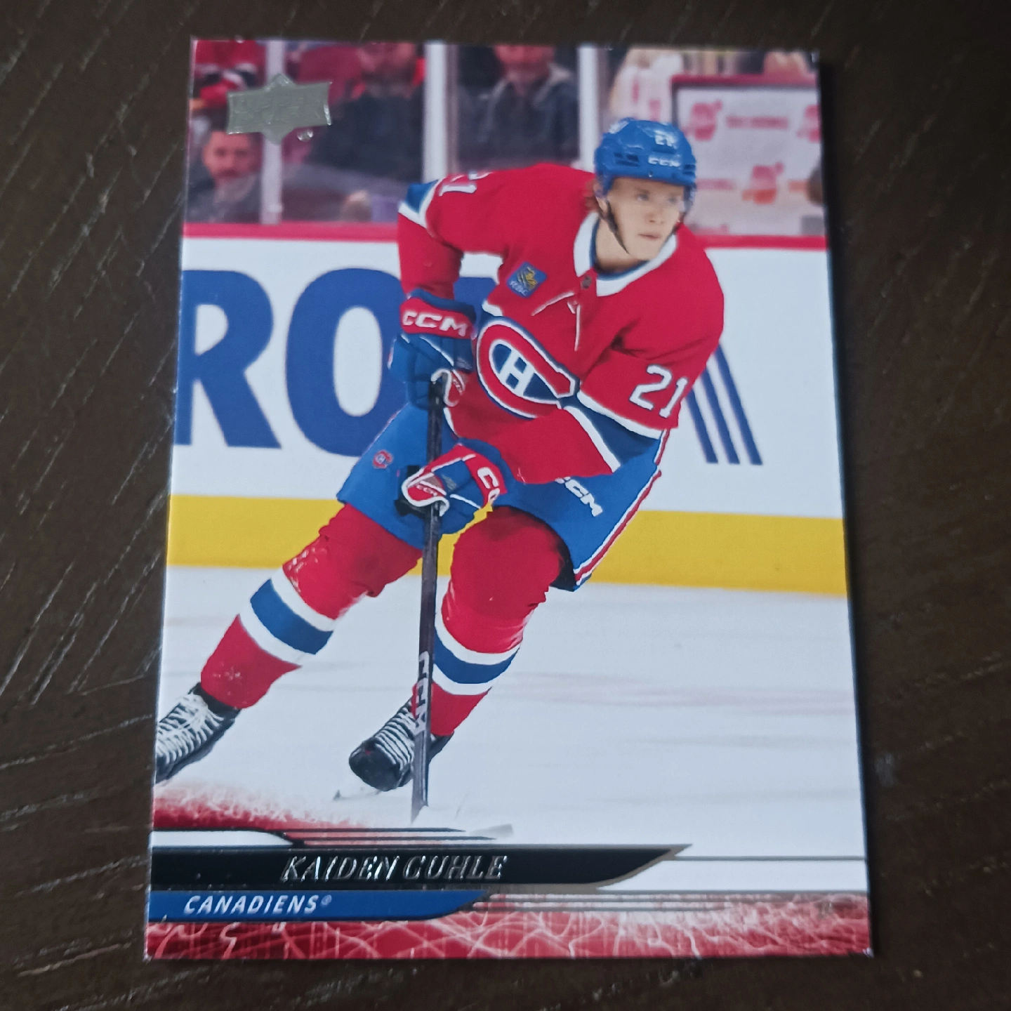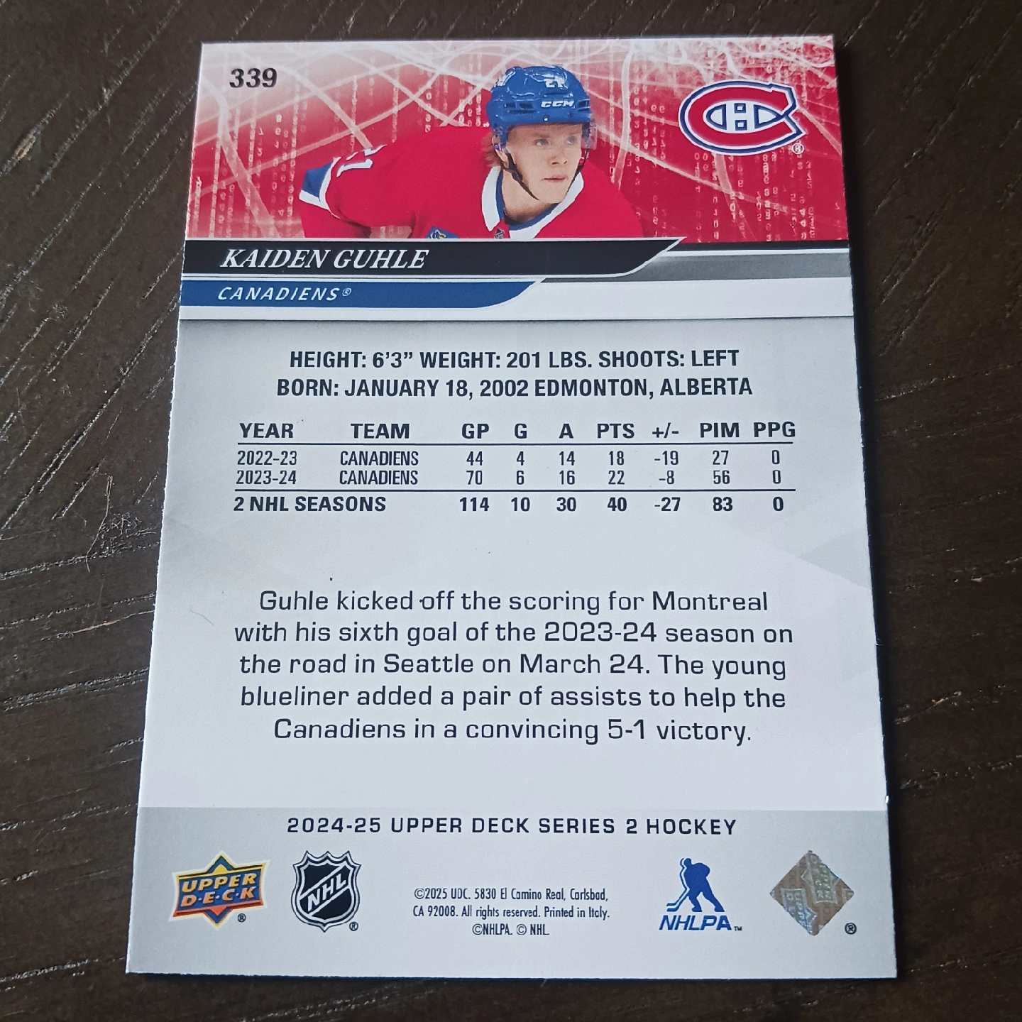 26Selling a Kaiden Guhle hockey card from the Canadiens. It's from the 2024-25 Upper Deck Series 2 Hockey collection. A great addition for any hockey card collector!