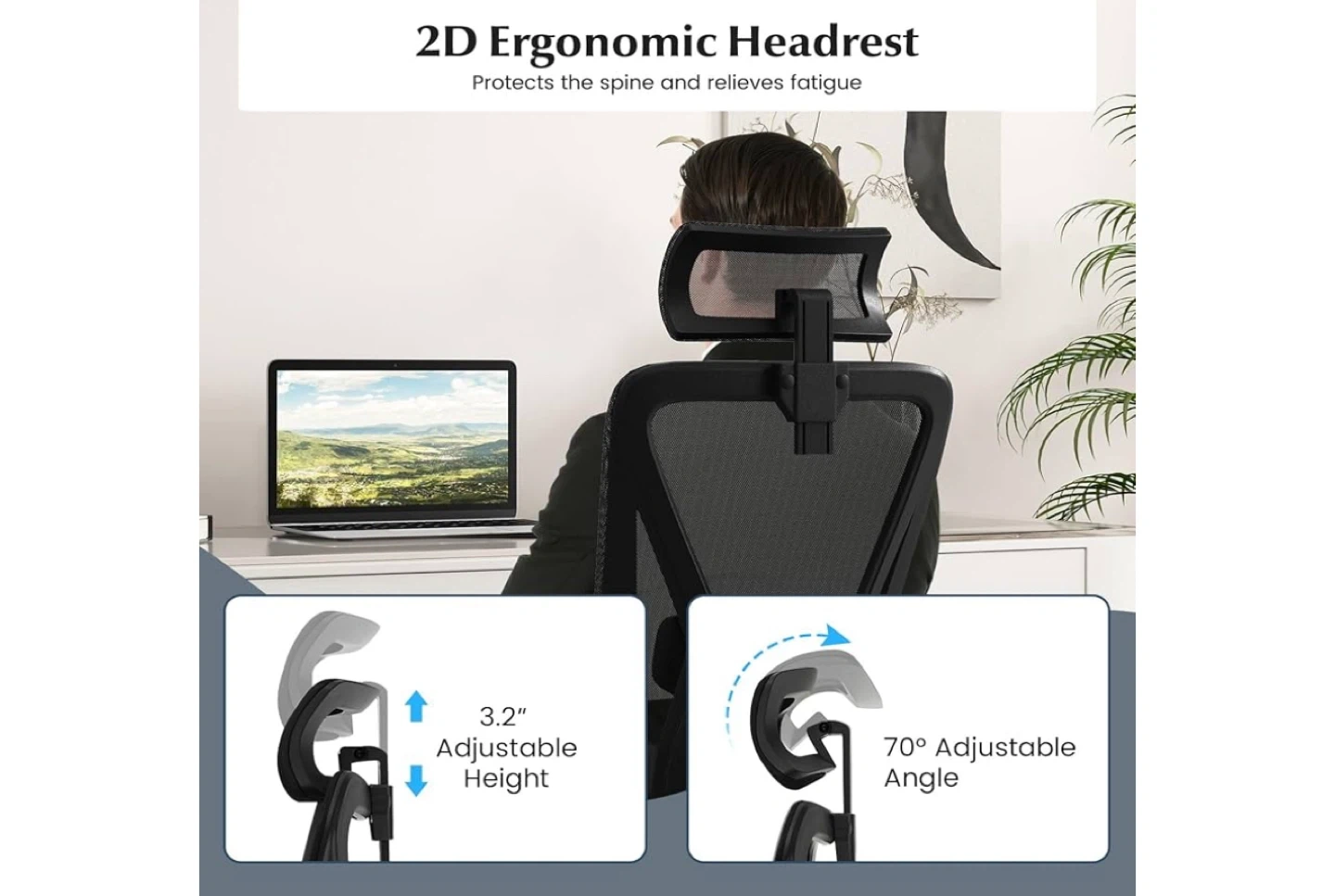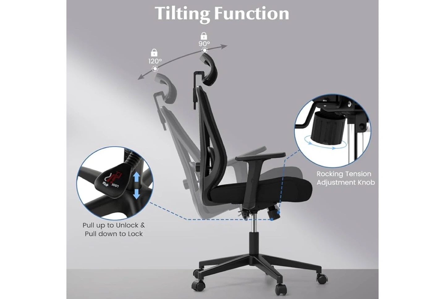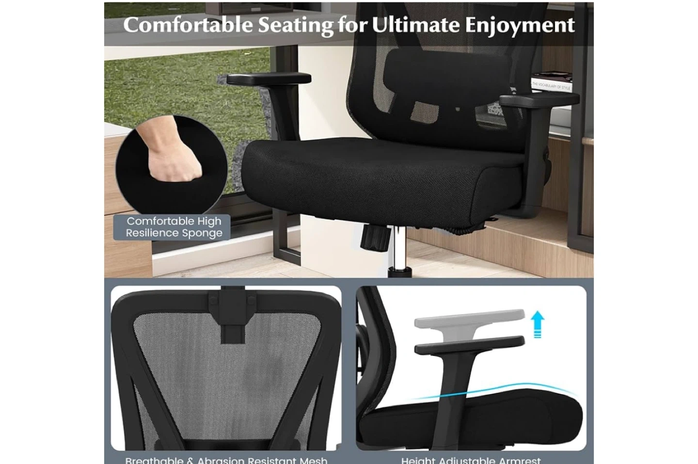 Looking to upgrade your home office? This black ergonomic office chair could be just what you need! It features a height-adjustable design, a stable 5-star base, smooth universal wheels, and a reliable adjustment lever. The chair's height can be adjusted from 43.5" to 47", and the seat depth is around 20.5".