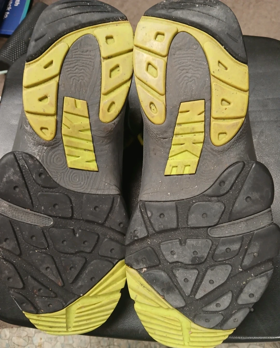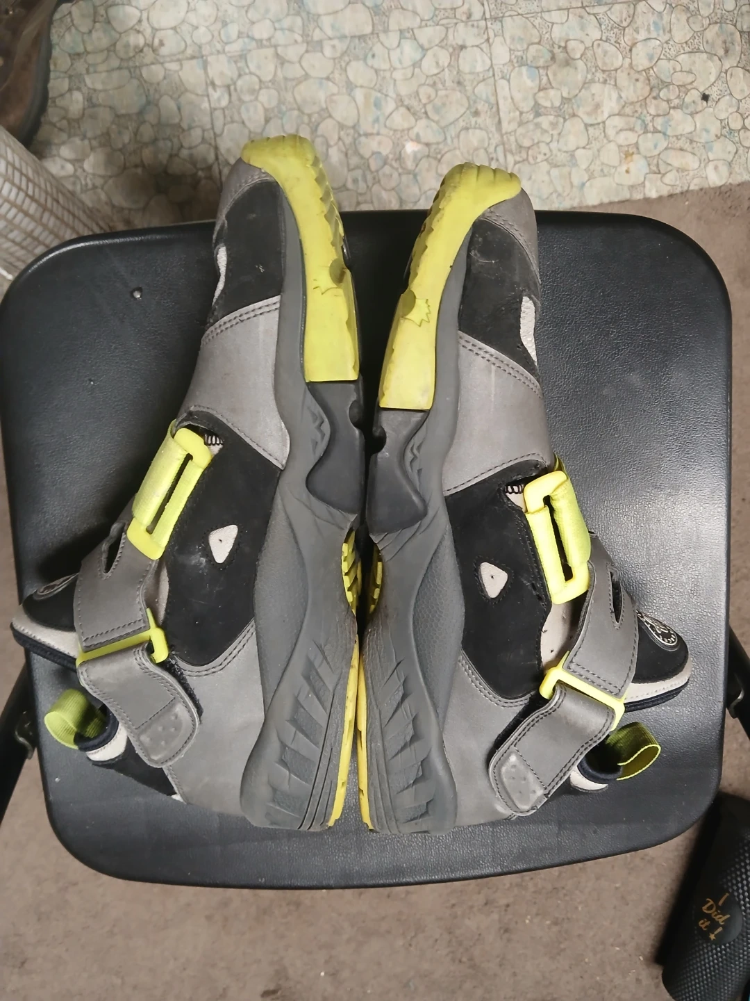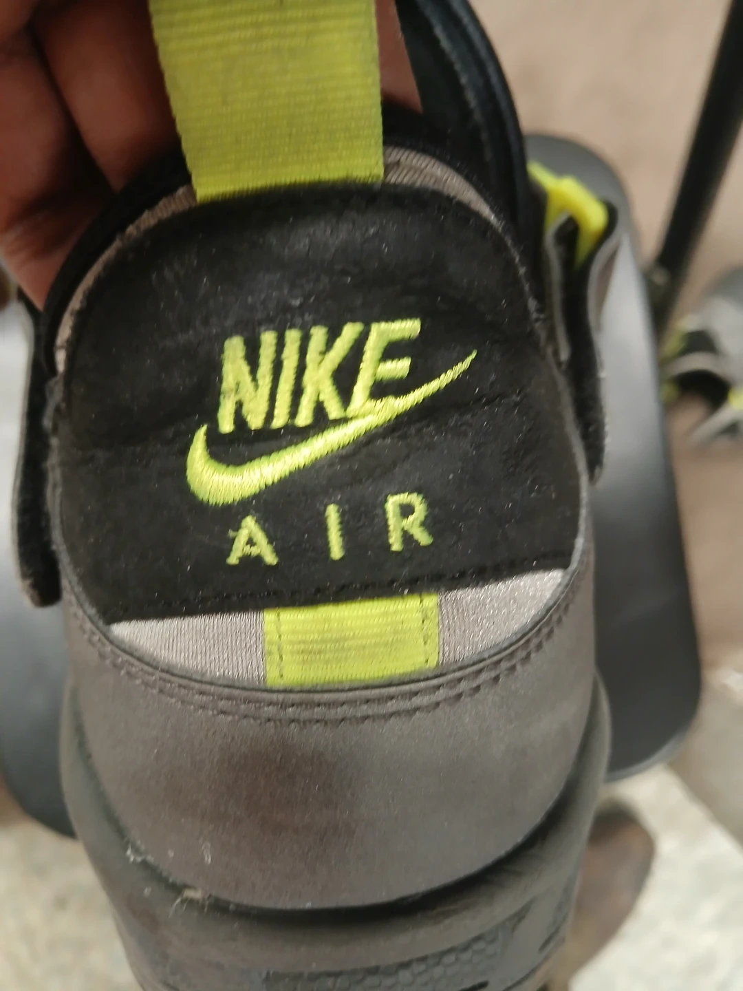 Grey, black, and neon yellow Nike Air Huarache Run Mid sneakers. Features adjustable ankle strap. Ideal for athletic activities or casual wear.