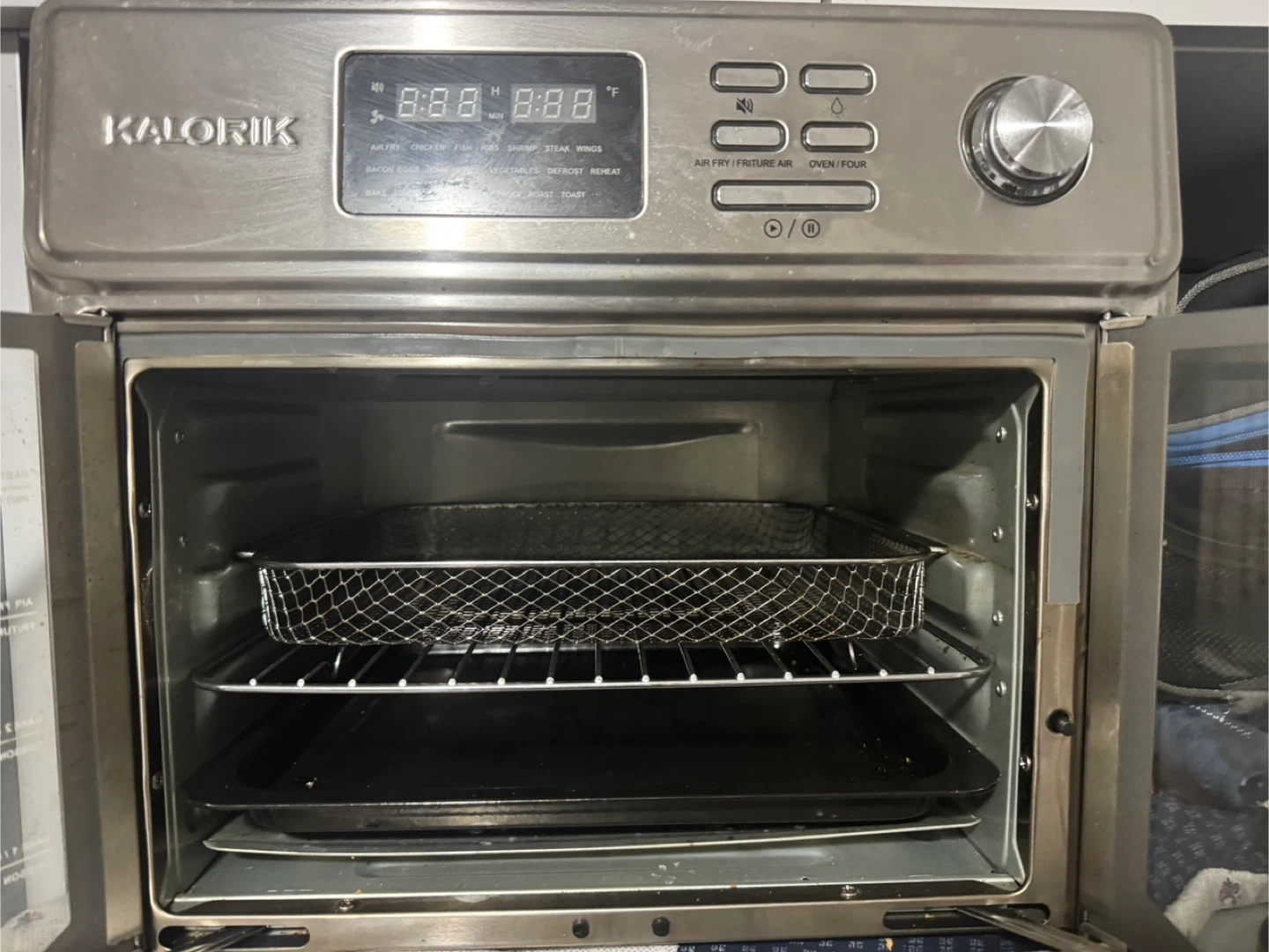 16Selling a used Kalorik air fryer oven. It's in good working condition and ready for a new home. It features multiple cooking functions like air frying, baking, and roasting. Perfect for quick and easy meals! Used for vegetarian purposes only. Not even eggs.