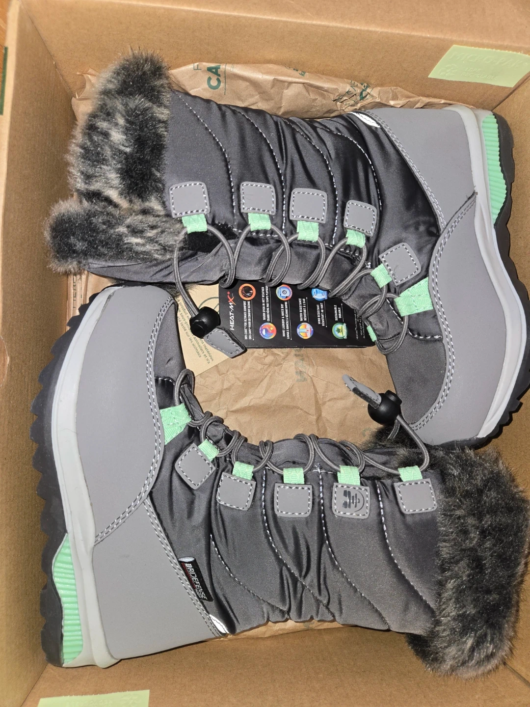 10Selling a pair of Kamik Prairie winter boots for kids in size 11 (US). They're charcoal and green, and come in the original box! These boots are waterproof and have a DriDefense membrane to keep little feet dry and warm. Perfect for the winter season!