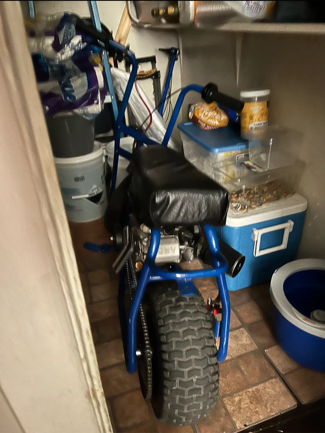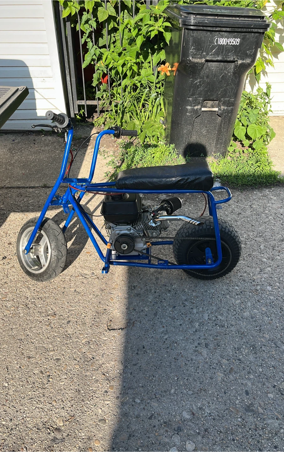 Selling a blue mini bike! It's in good condition and ready for a new rider. Perfect for some fun outdoor adventures and it is 212Cc