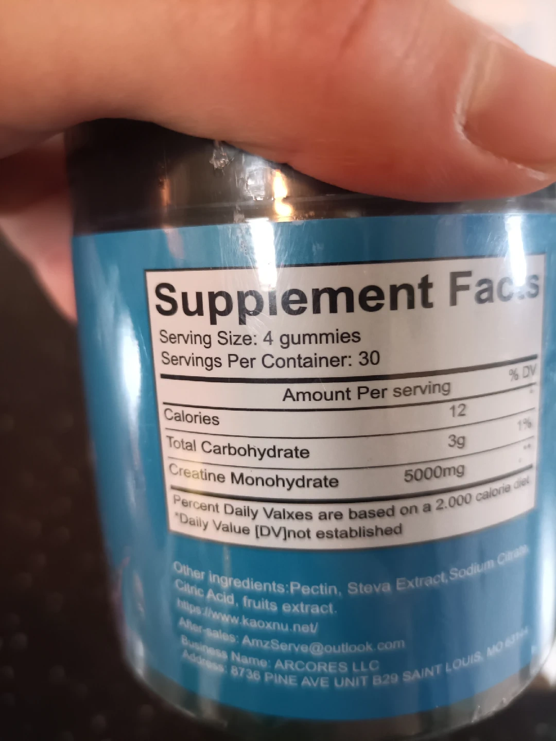 110I have Kaoxnu Creatine Monohydrate Gummies for sale. These gummies support muscle growth, strength, and endurance. They're also sugar-free and come in blueberry and strawberry flavours. Each serving contains 5000mg of creatine monohydrate. 15 each or 40 all three