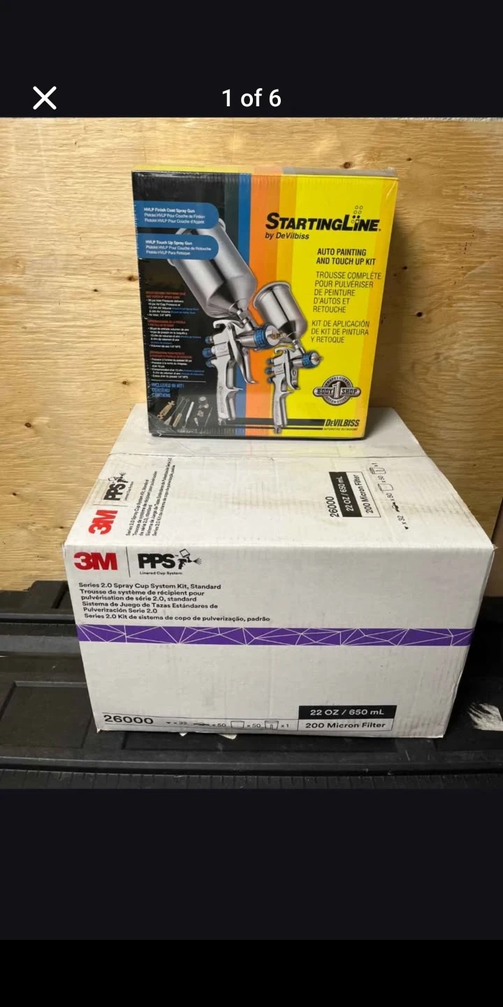This is a DeVilbiss Startingline spray gun system, including two HVLP spray guns. It's designed for auto painting and touch-up work. Includes a pressure gauge and various cleaning brushes. CASH ONLY