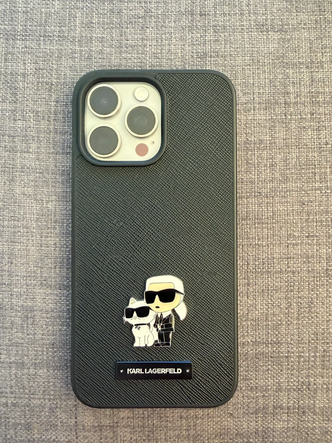 68Selling a Karl Lagerfeld iPhone case. It's black and features a cute Karl Lagerfeld and cat design. It's in great condition! The original price: 99 CAD Iphone 15 pro max