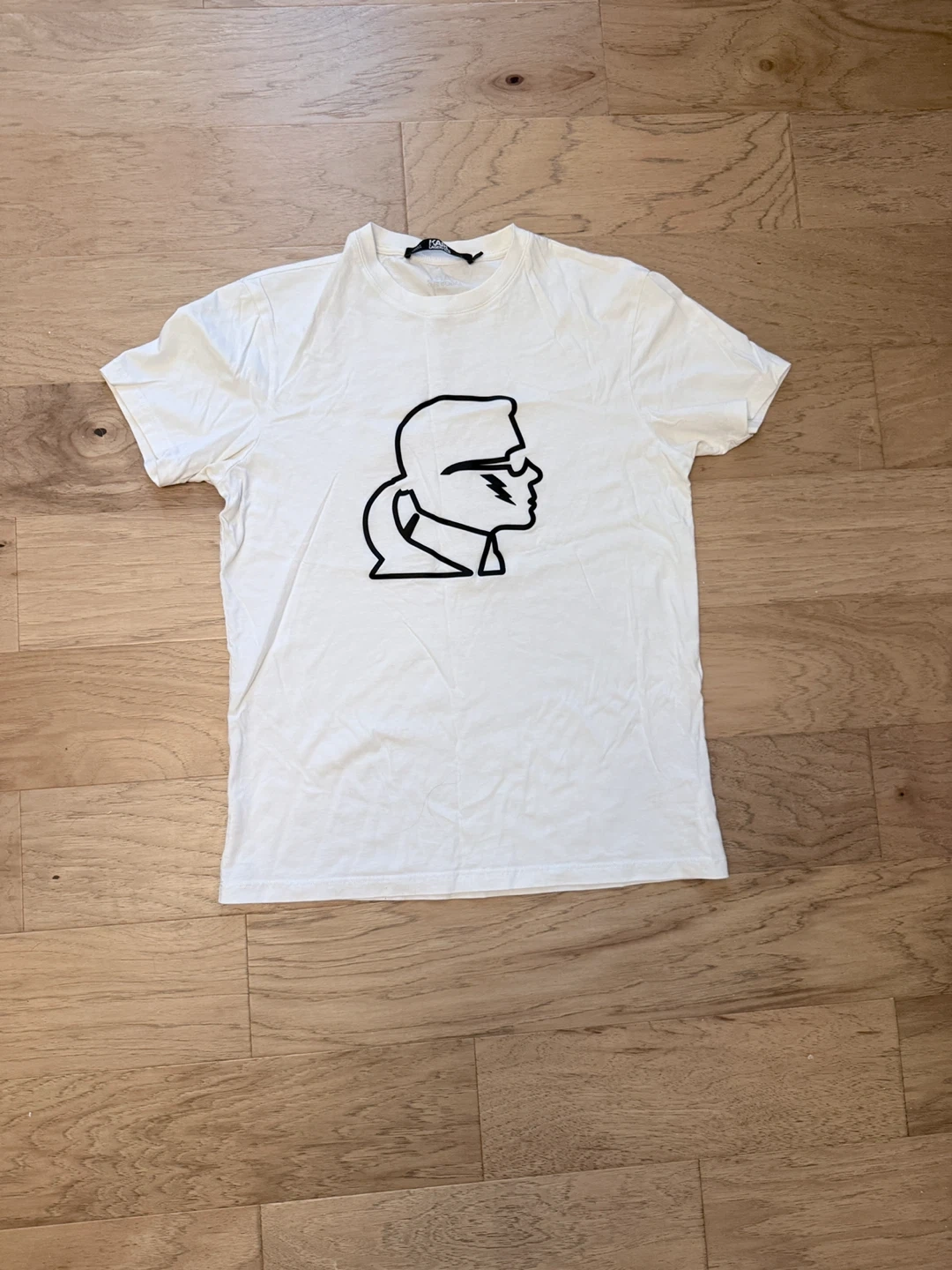 10Selling a Karl Lagerfeld white t-shirt. It features the iconic Karl Lagerfeld logo on the front. Great for casual wear!