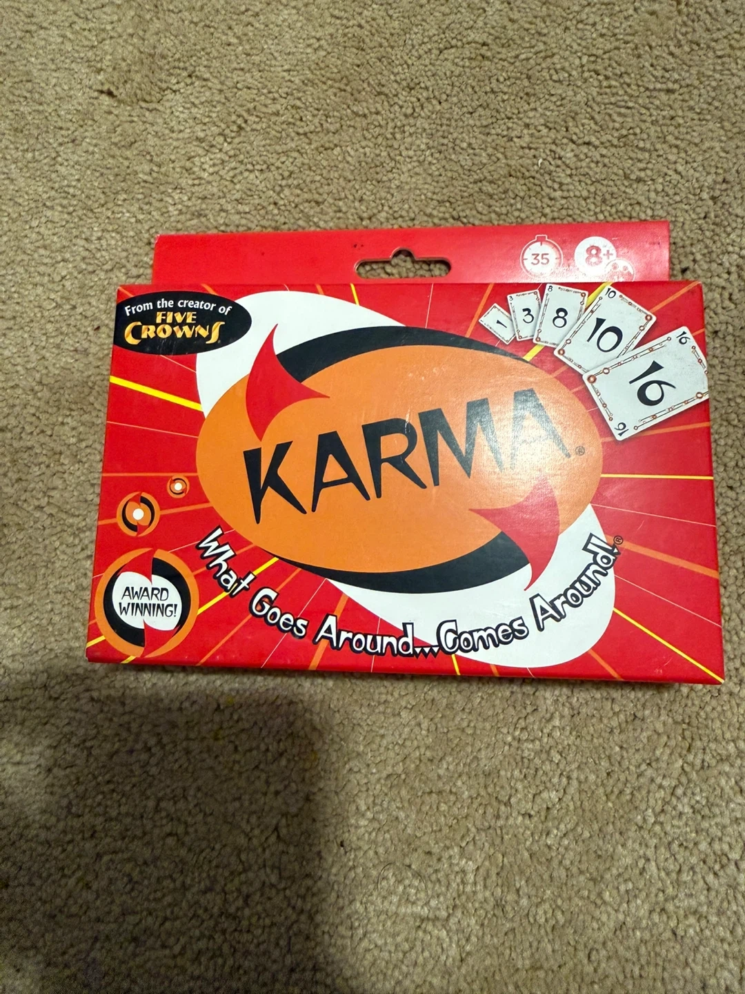 Get ready for some fun with the Karma card game by PlayMonster! This game is playfully competitive and infectiously fun. Race to get rid of all your cards by playing a card of equal or higher value. Suitable for ages 8 and up, it's perfect for family game nights or playing with friends