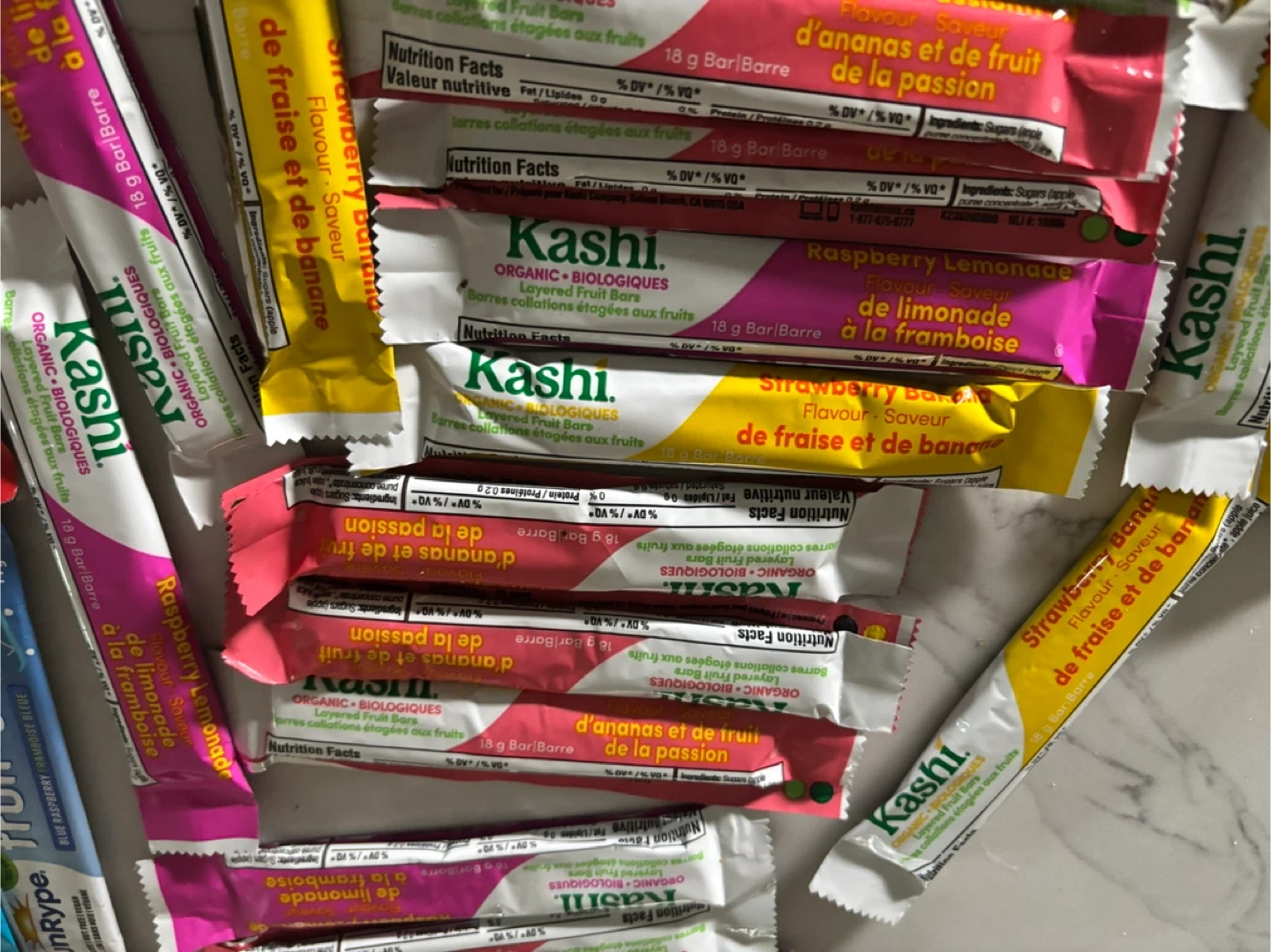 1000+A variety pack of Kashi layered fruit bars and Fruit to go bars! Perfect for a quick snack on the go. Flavours include strawberry banana, raspberry lemonade, pineapple passionfruit, apple, strawberry, and blueberry