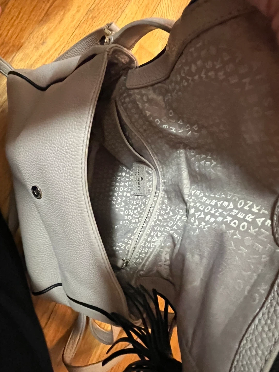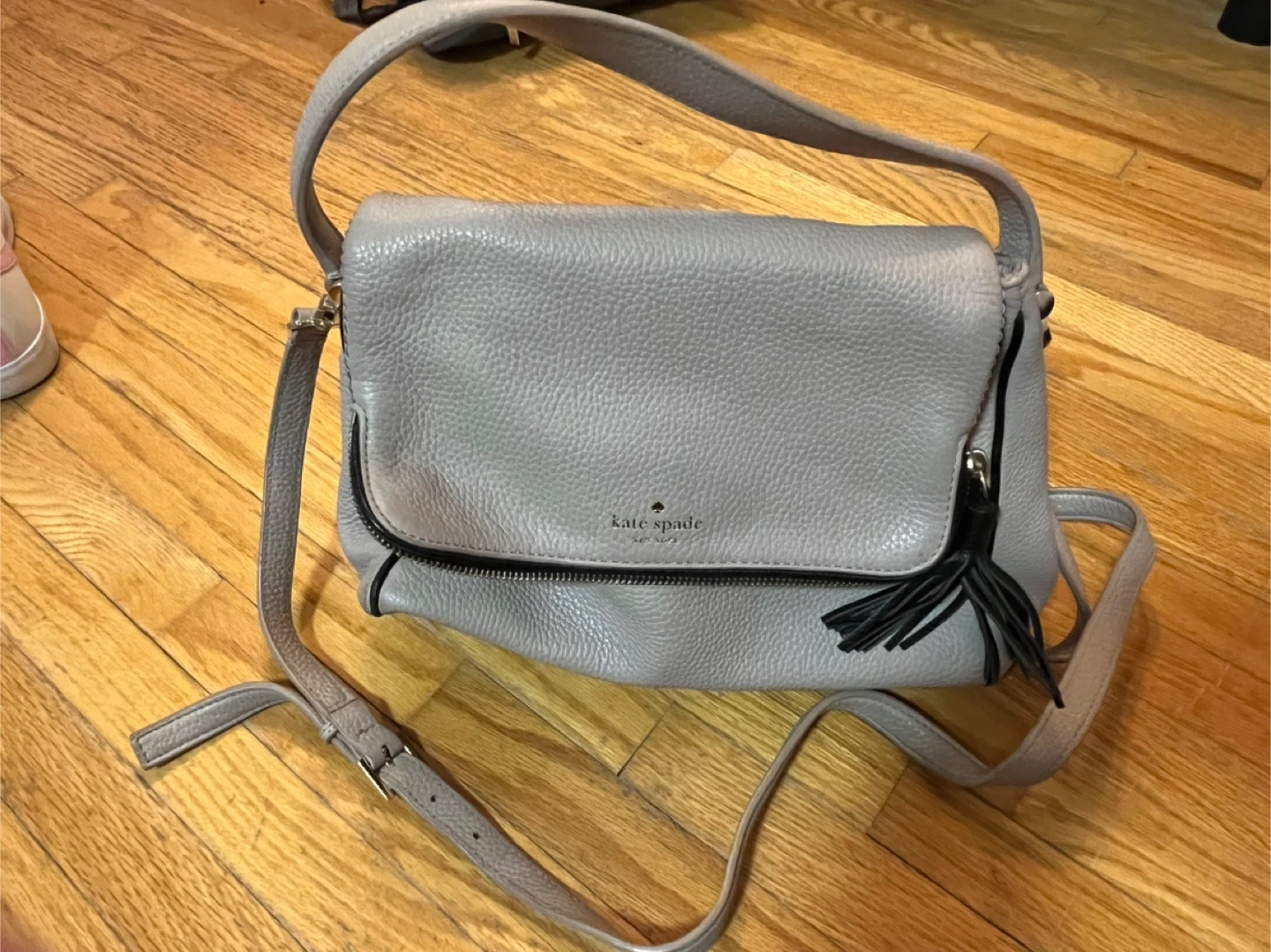 Selling a lovely Kate Spade shoulder bag in a beautiful grey beige colour. It's made of leather and has a stylish tassel detail. Perfect for everyday use! Leather is in great condition !