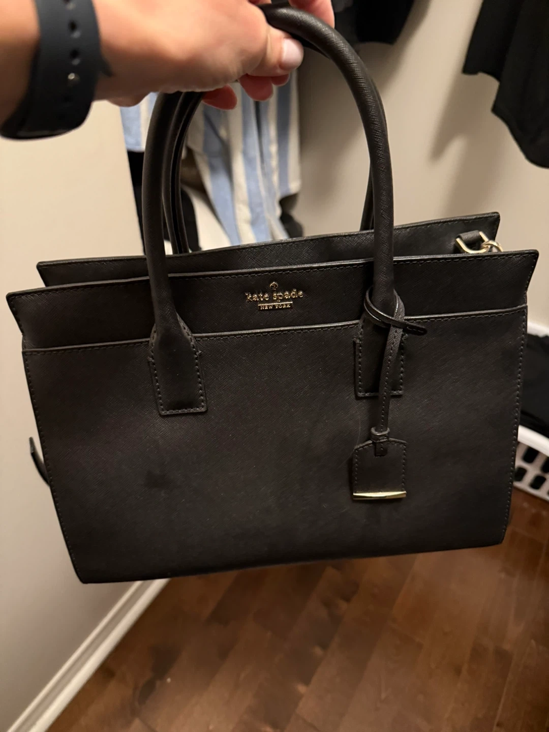 10Selling a classic black Kate Spade satchel. It's in great condition and perfect for everyday use or a night out. The bag features a structured design with top handles and a detachable shoulder strap for versatile carrying options. A stylish and functional addition to any wardrobe!