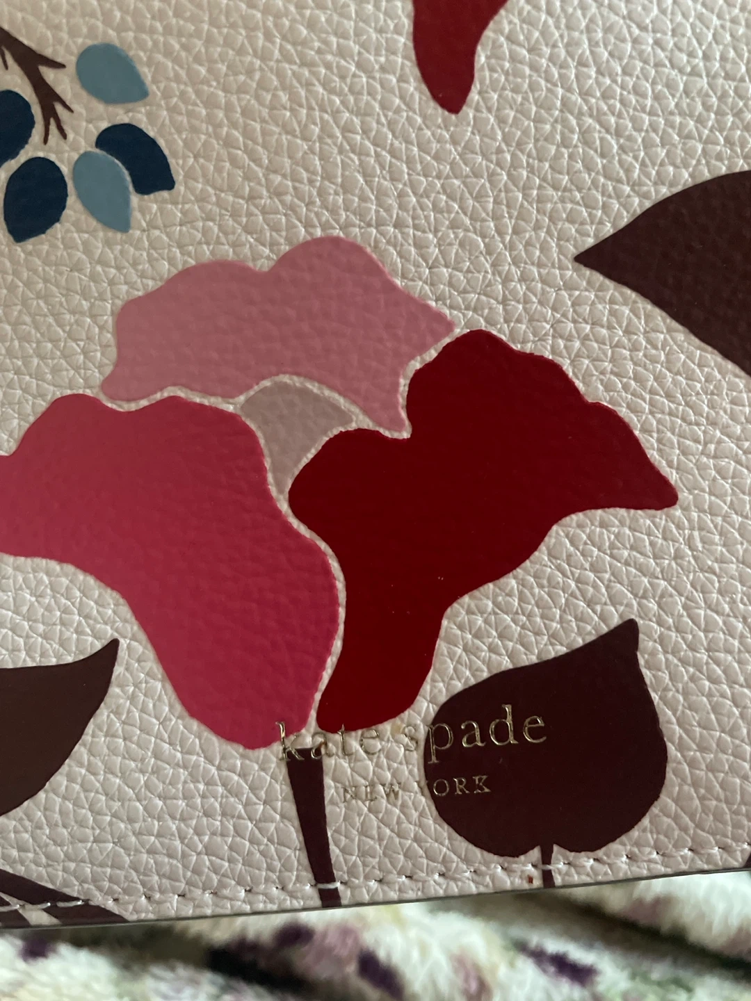 Selling a cute Kate Spade crossbody bag with a floral design! It's in great condition and perfect for carrying your essentials. Has a chain strap and a zip closure. Great for a gift!