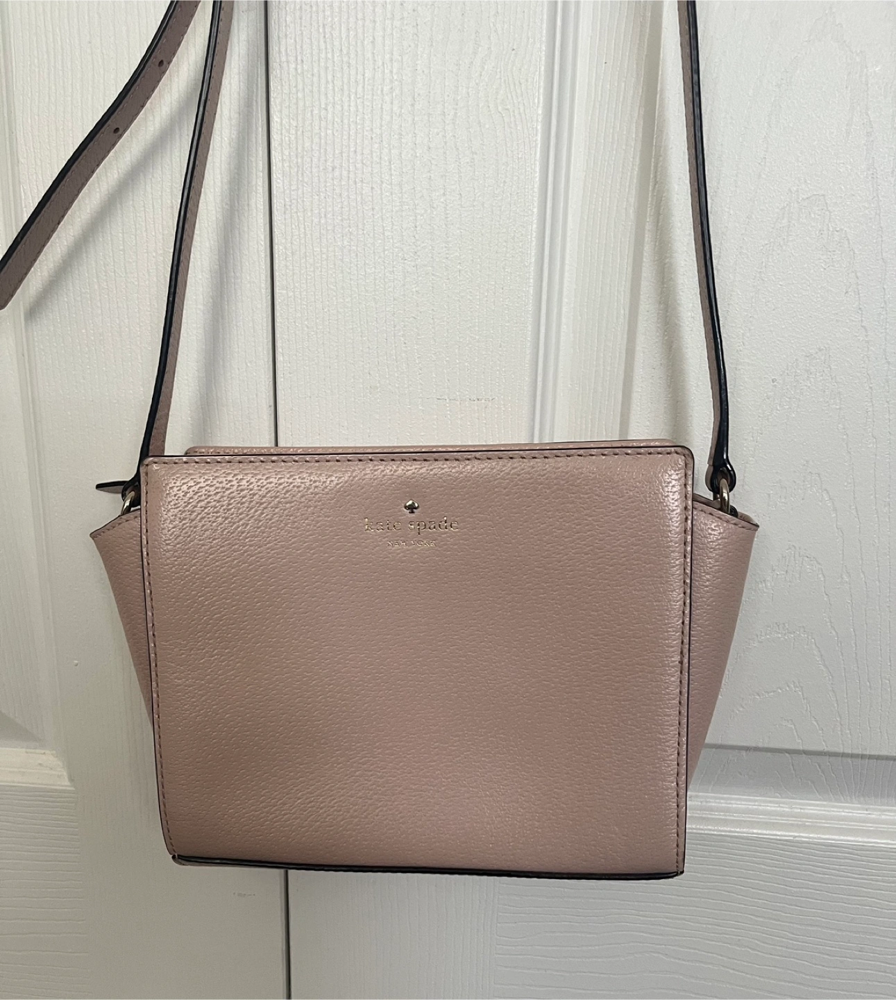 792A cute Kate Spade crossbody bag in a light pink colour! It's in great condition and perfect for everyday use. Pickup Brampton or downtown Toronto Elegant Kate Spade crossbody in a blush pink colour. The lighting changes the colour of the bag but it is more like the first 2 pictures! Details : -Leather -Color: warm vellum (light pink) -Top zip closure -Adjustable strap -Interior has 2 pockets (one slip pocket, one with zipper) SIZE 6.6"h x 8.2"w x 3.1"d drop length: 22" total adjustable strap length: 45.3"