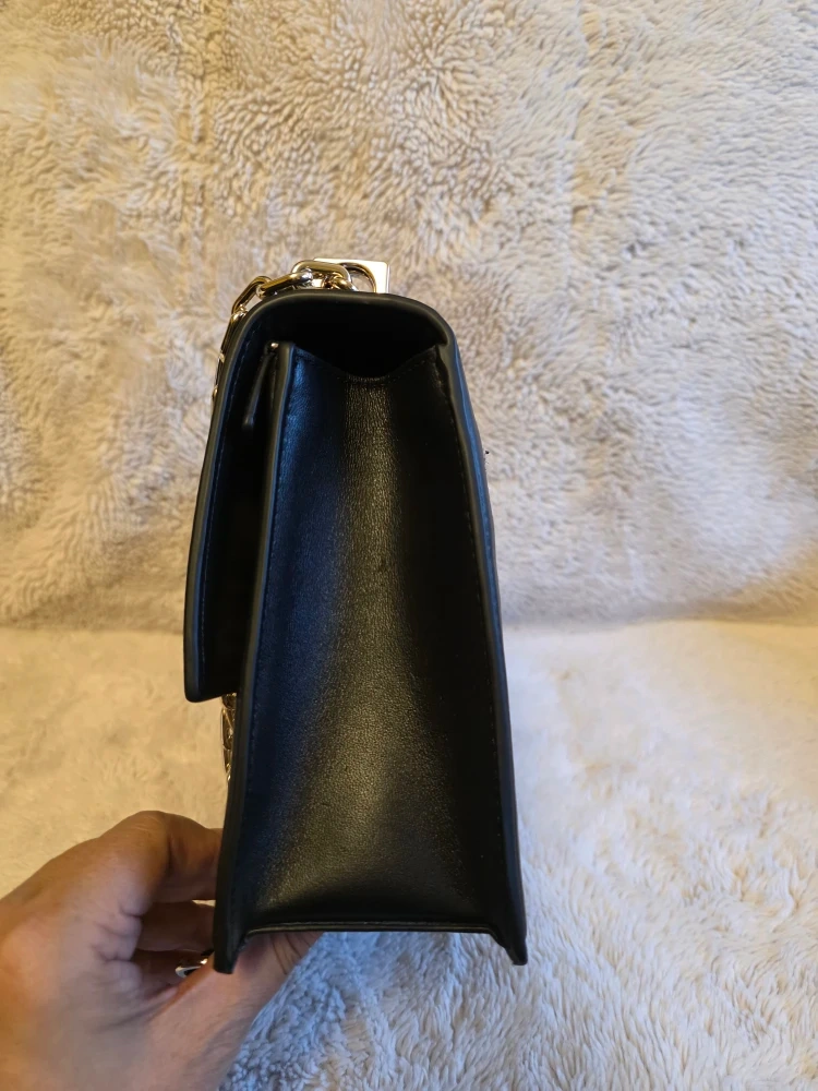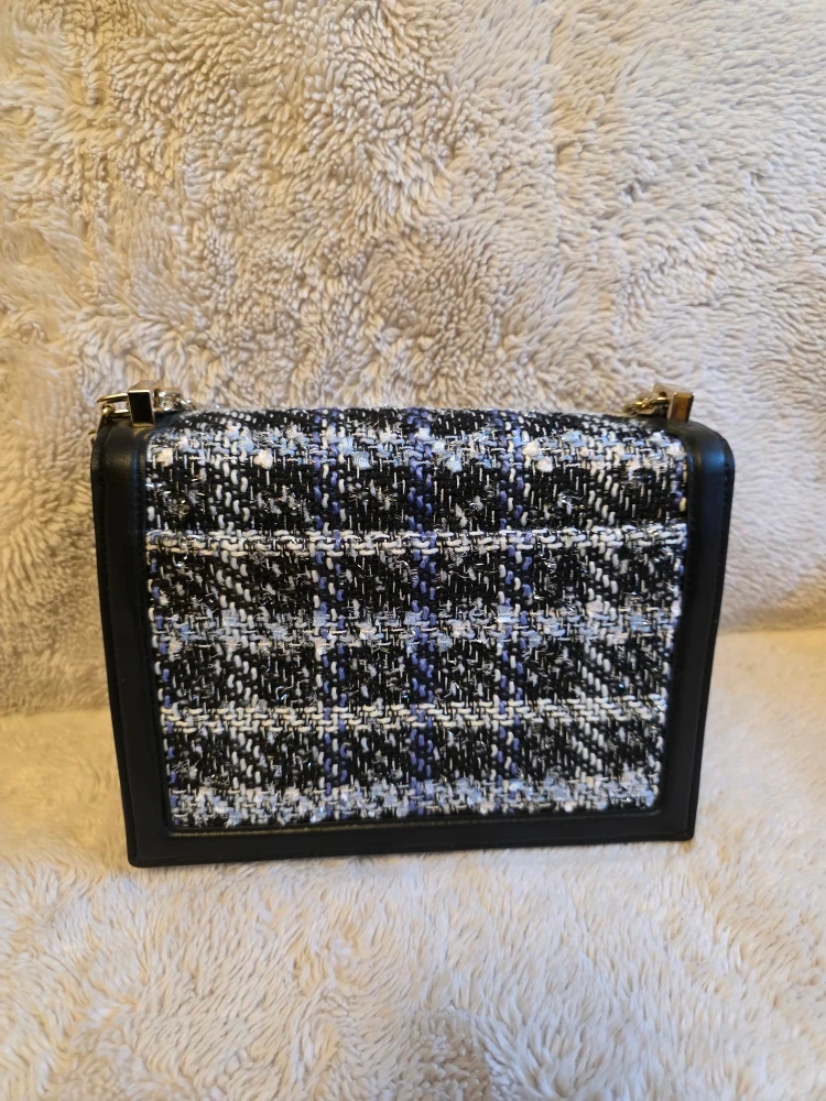 10Purchased at Retail Store and not at the Outlet for $558+ tax. Chic with luxe finishes, this Deco-inspired bagmakes a great staple for everyday or special occasions. Materials: Tweed, Smooth Leather & PU trim, and Microsuede & faille lining. Back slip pocket Interior zip and slip pockets Magnetic snap closure 9" x 6.75" x 2.75" 22.5" strap drop length Comes with dustbag.