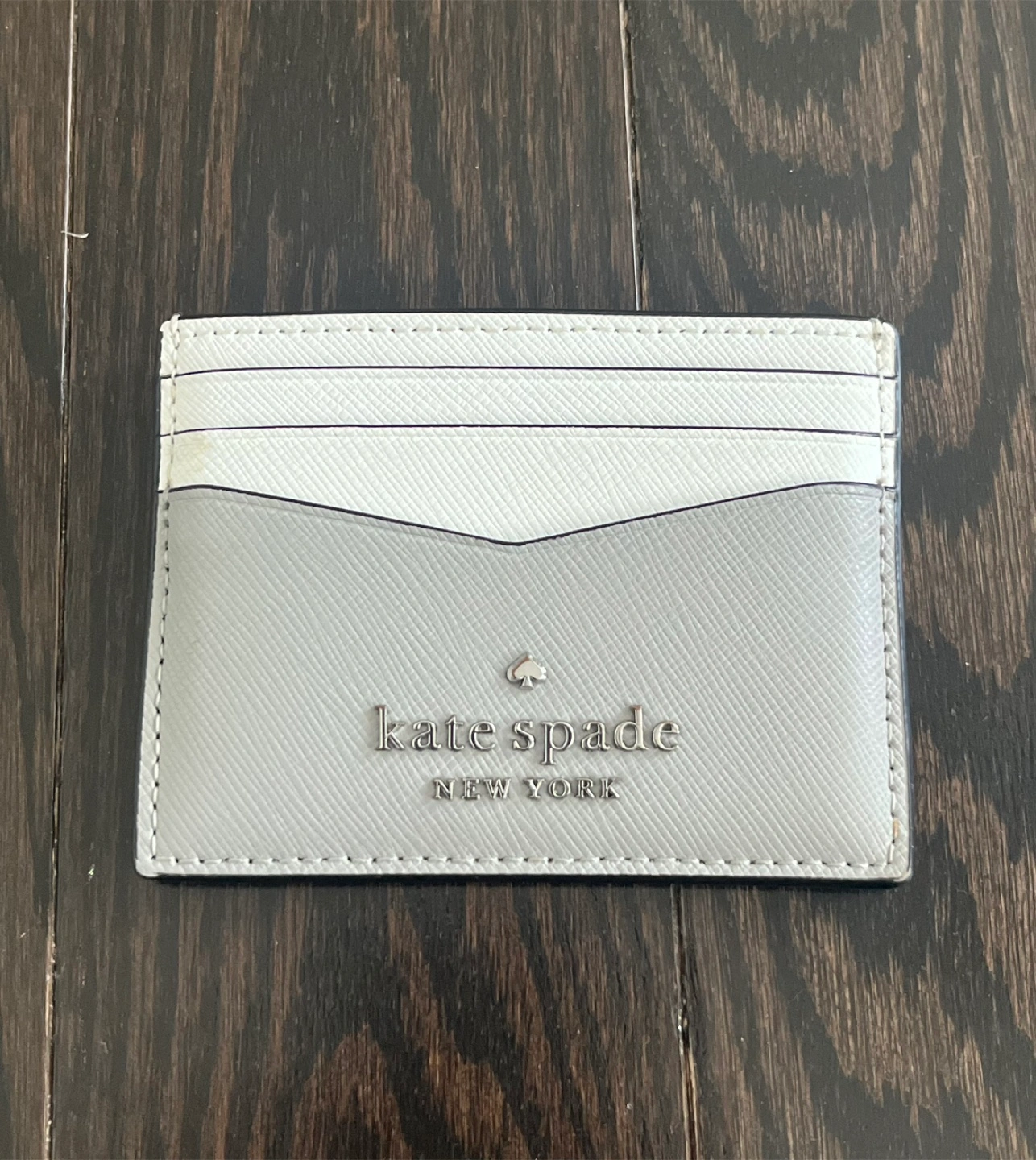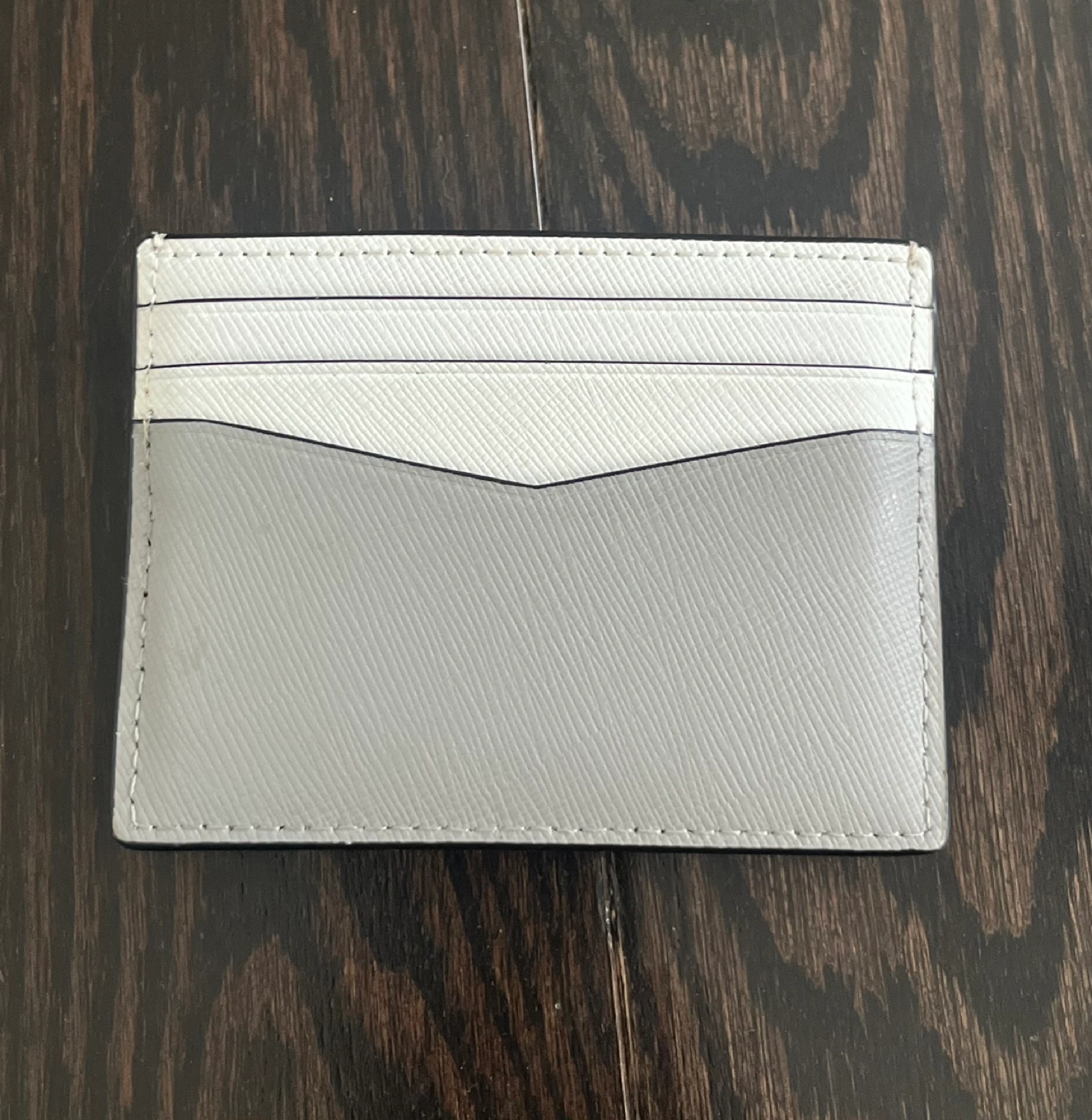792This Kate Spade card holder is in like new condition! It's a light grey colour and perfect for carrying your essential cards. It has a sleek design and is easy to slip into any bag or pocket Elegant card holder by Kate Spade. Features a sleek design. Like new condition, only used twice Pickup Brampton or downtown Toronto 6 credit card slots open middle pocket Spade metal pinmount logo 3.0"h x 3.9"w