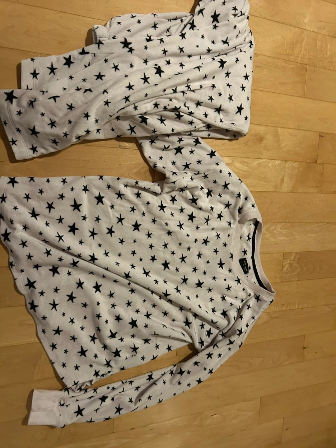 Cozy up with this adorable Kate Spade pajama set! It features a cute star pattern and is super comfy. The set is a size medium and in great condition. Perfect for lounging around the house!