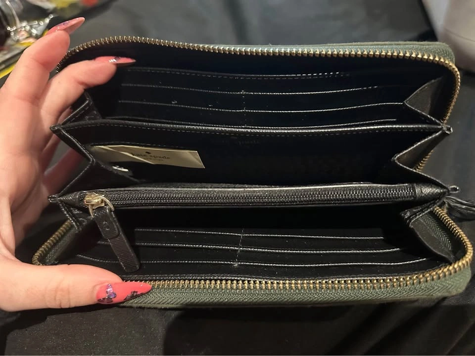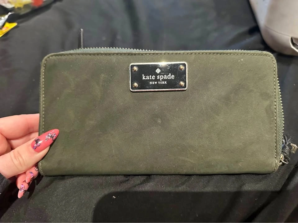 Slight staining, barely noticeable. No rips or tears. Dark green