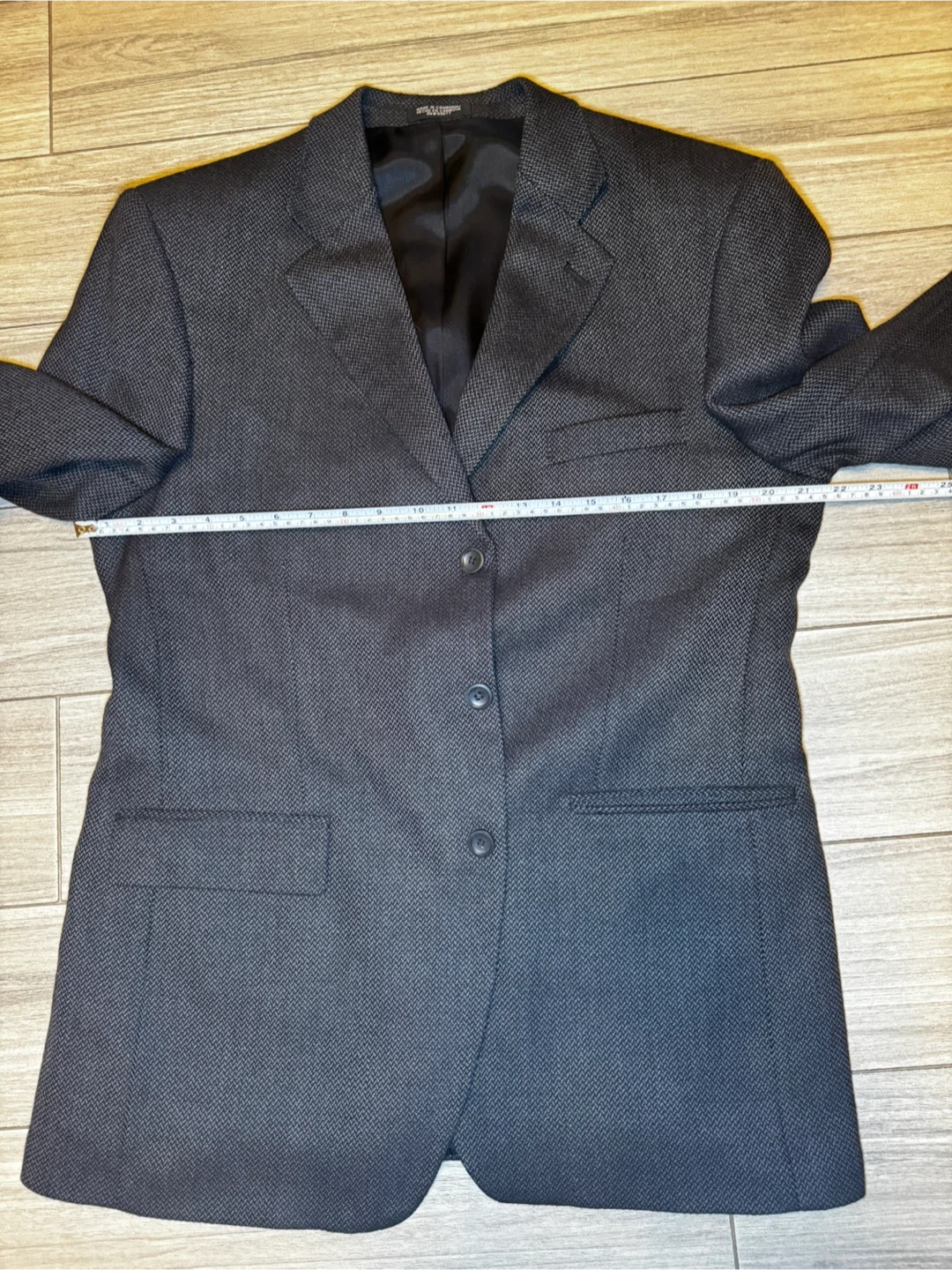 The Stafford Gray Wool Cashmere Tweed Herringbone Blazer in size 42R is a classic and stylish piece for formal or business occasions. Made from a luxurious blend of cashmere and wool, this blazer features a herringbone pattern on a tweed fabric, with a notch lapel and double-vented back for a sophisticated look. The regular fit and four-button sleeve detail add to the overall elegance of this timeless piece from the Stafford brand, perfect for the winter and fall seasons.