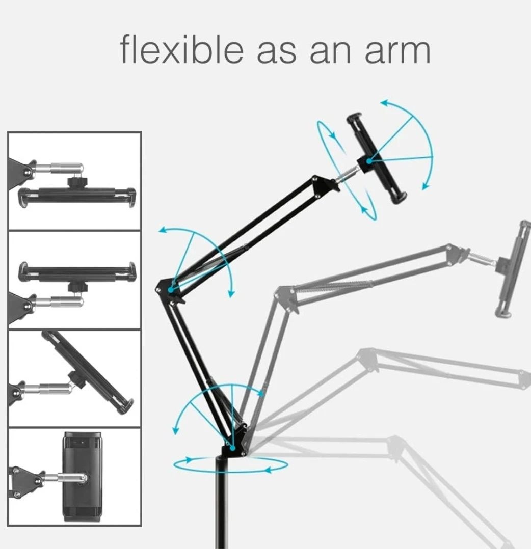 This phone/tablet floor stand is perfect for hands-free use of your tablet or phone! It's compatible with devices from 4.7" cellphones to 11" tablets. The stand features: