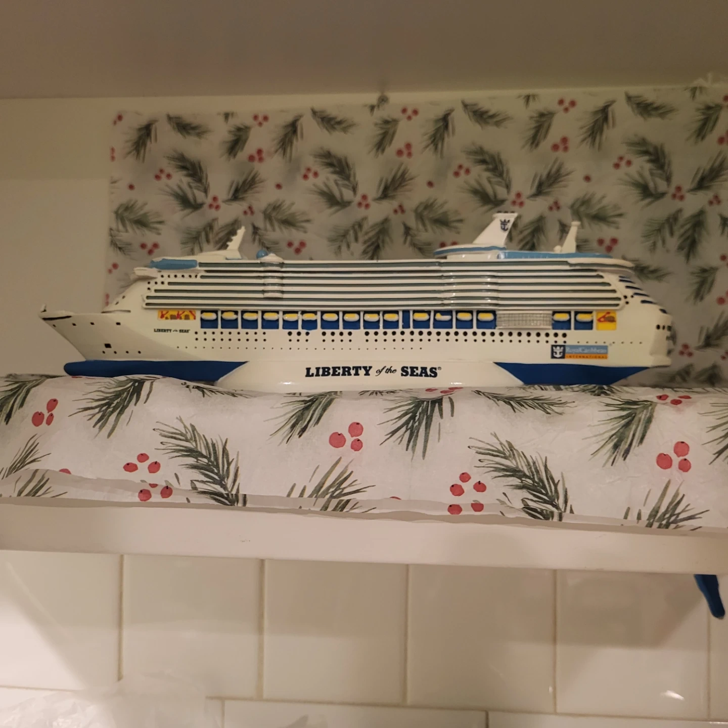 Selling a Royal Caribbean International Liberty of the Seas model ship! It's a detailed replica with the ship's name clearly displayed on the side. A great collectible for cruise enthusiasts!
