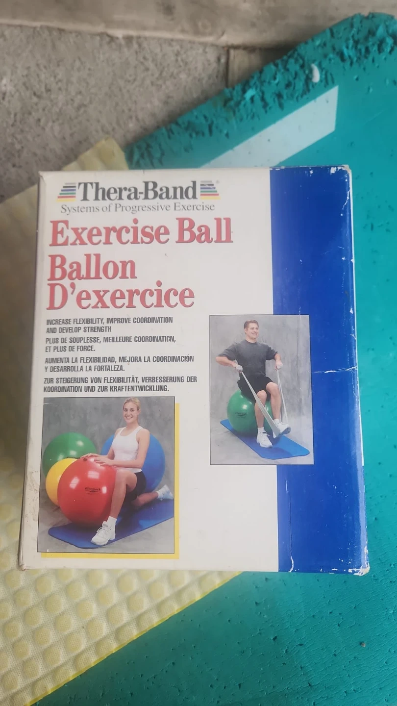Thera-Band exercise ball for increasing flexibility, improving coordination, and developing strength. Helps increase flexibility, improve coordination, and develop strength.