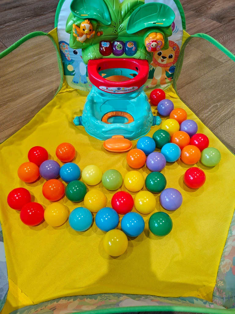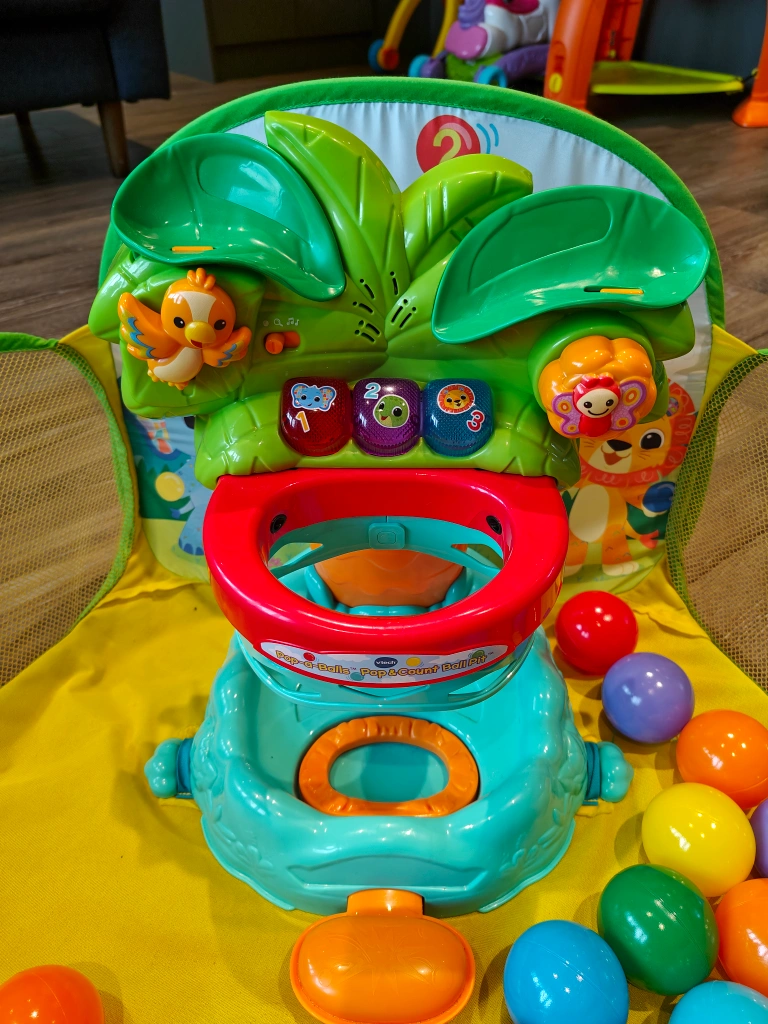 Looking to sell this VTech Pop-a-Balls Pop & Count Ball Pit! It's in great shape and comes with colourful balls. Perfect for keeping your little one entertained and learning numbers at the same time. Hours of fun guaranteed!