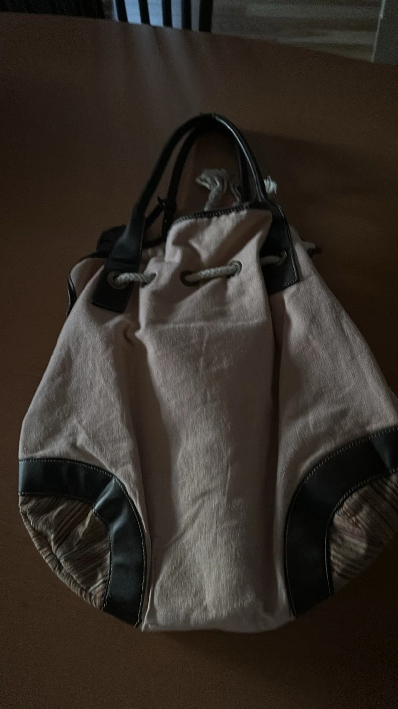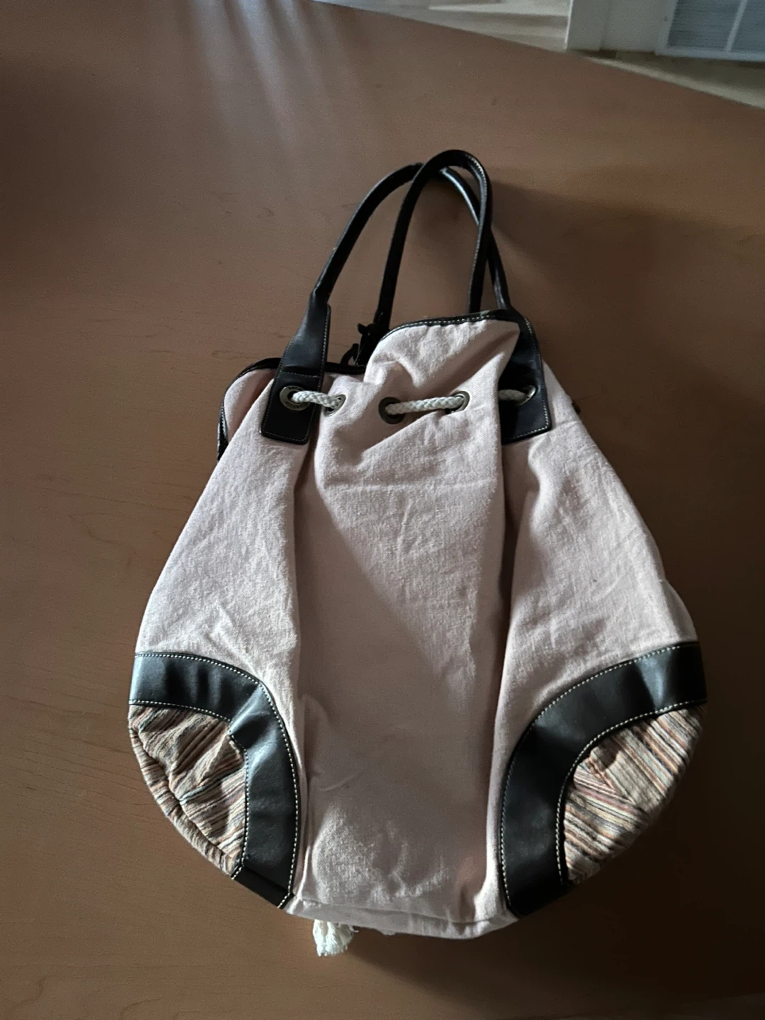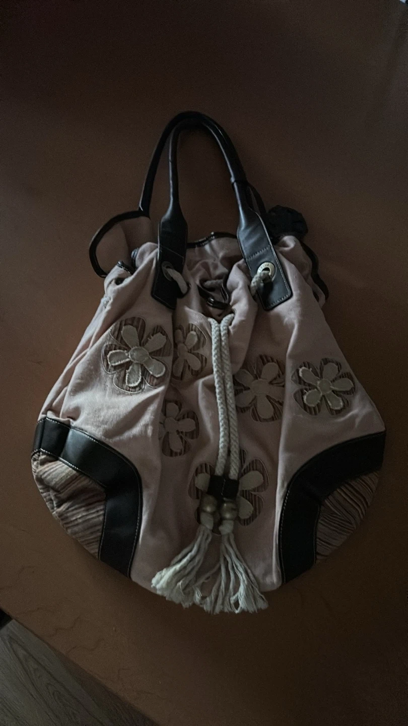 Beige/ light pink Drawstring Shoulder Bag with Floral Appliqués