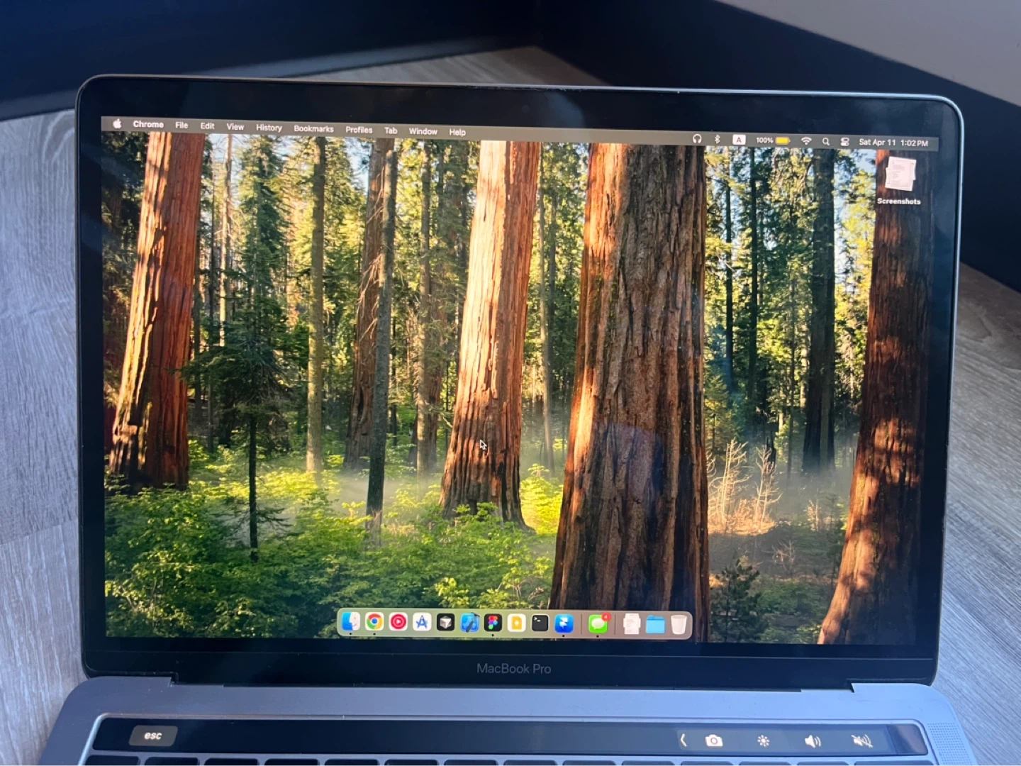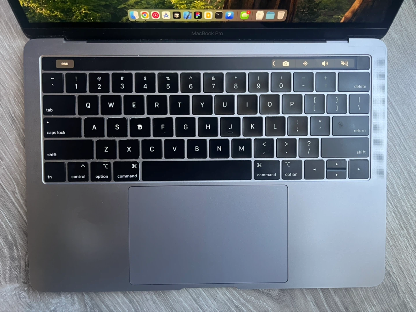 This is an Apple MacBook Pro laptop in space grey. It has a 13-inch Retina display and a touchbar. Everything functions well.