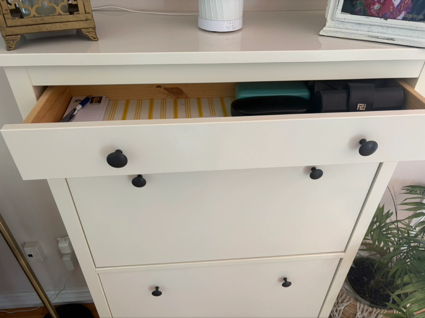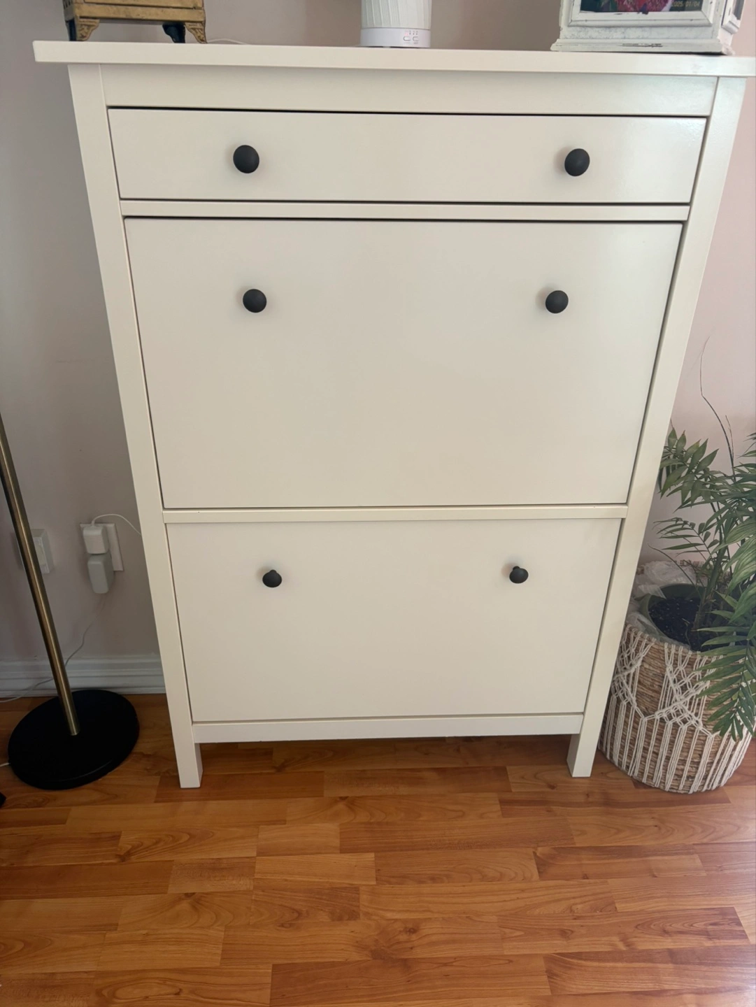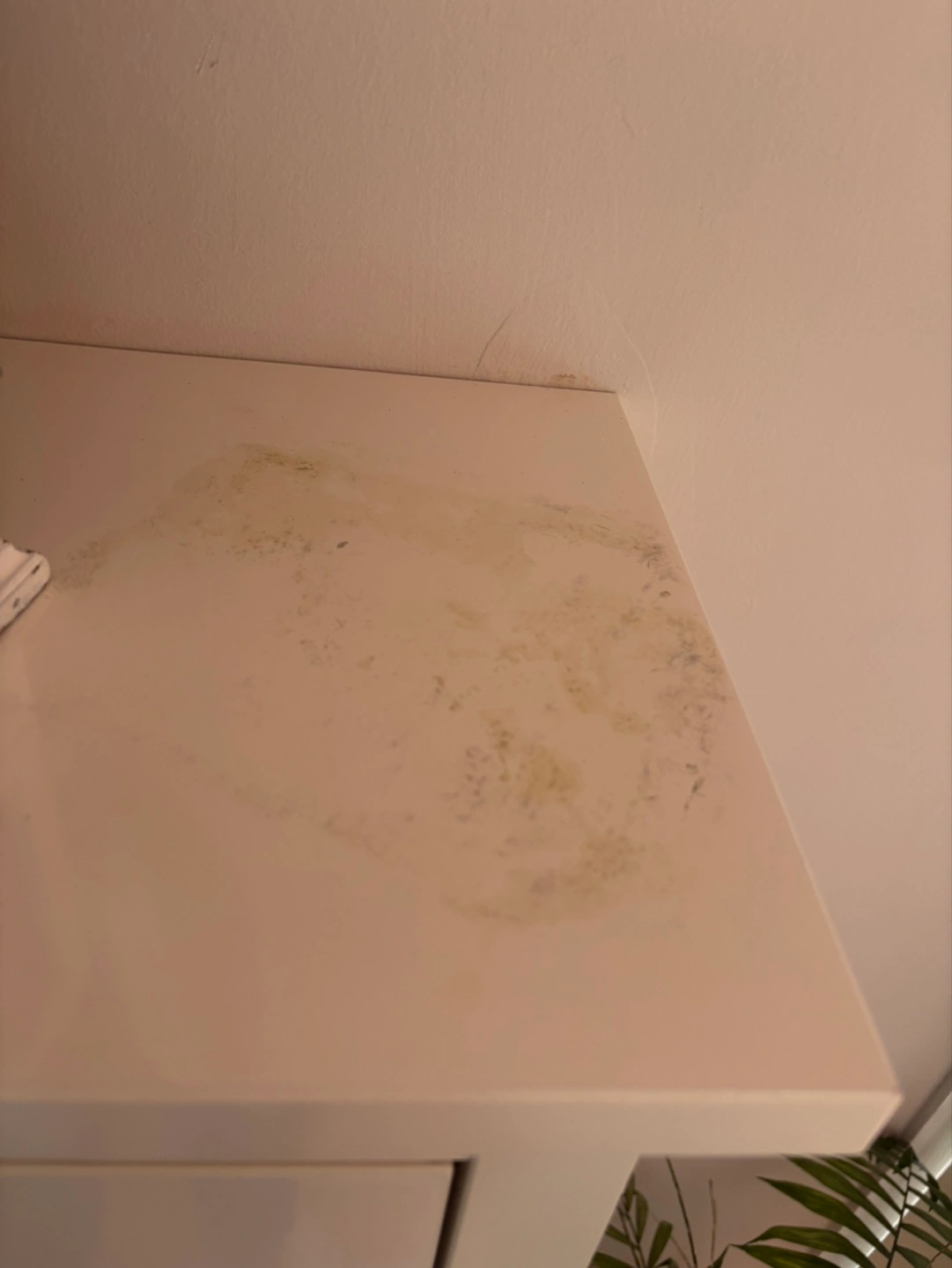 Some wear and tear, along with slight paint damage on the top surface from having a plant placed there with water exposure.