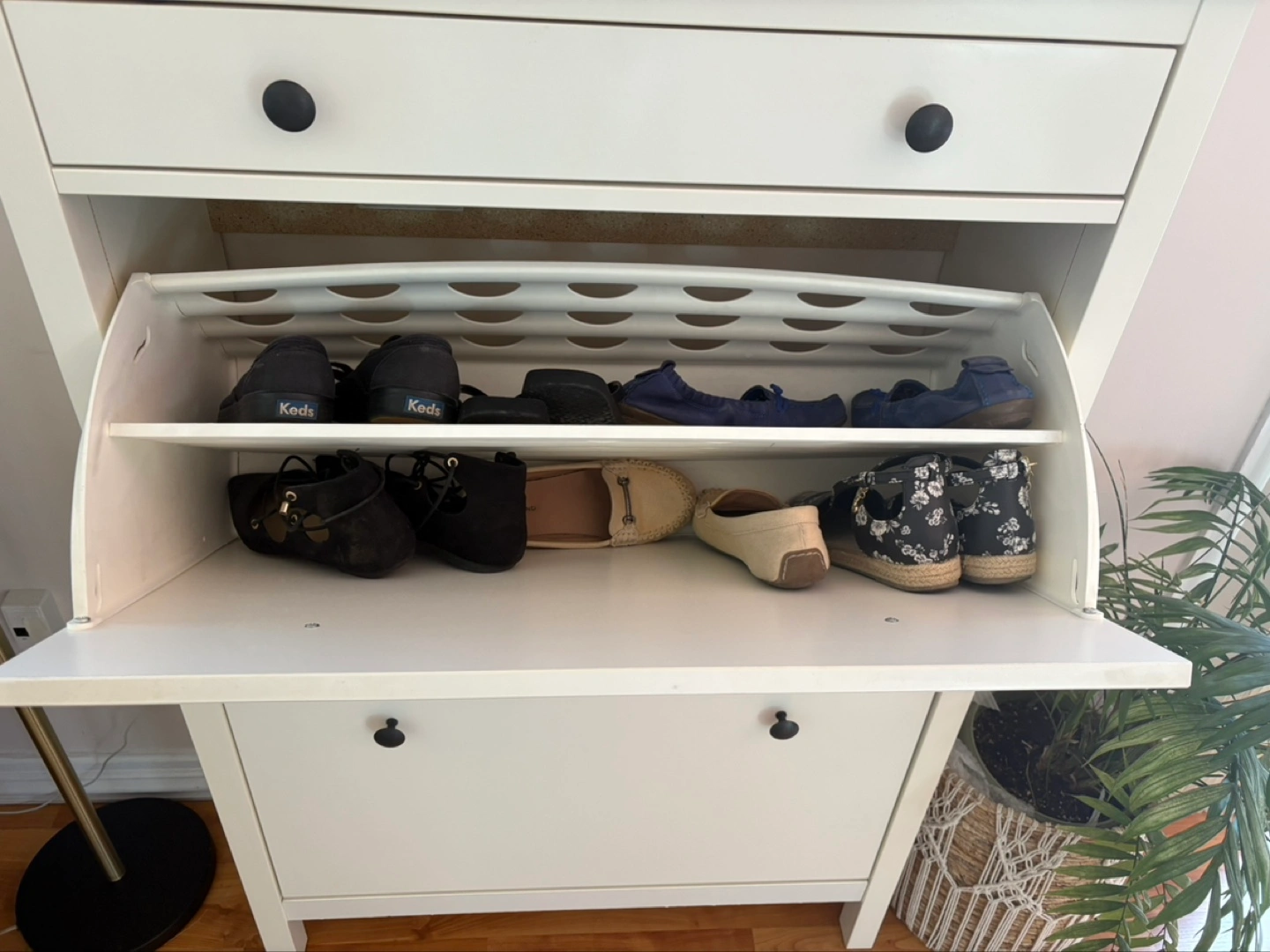 Some wear and tear, along with slight paint damage on the top surface from having a plant placed there with water exposure.