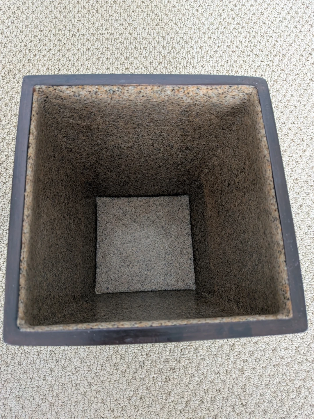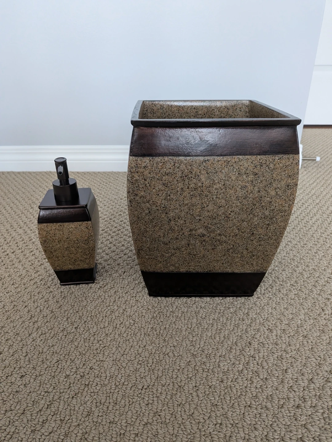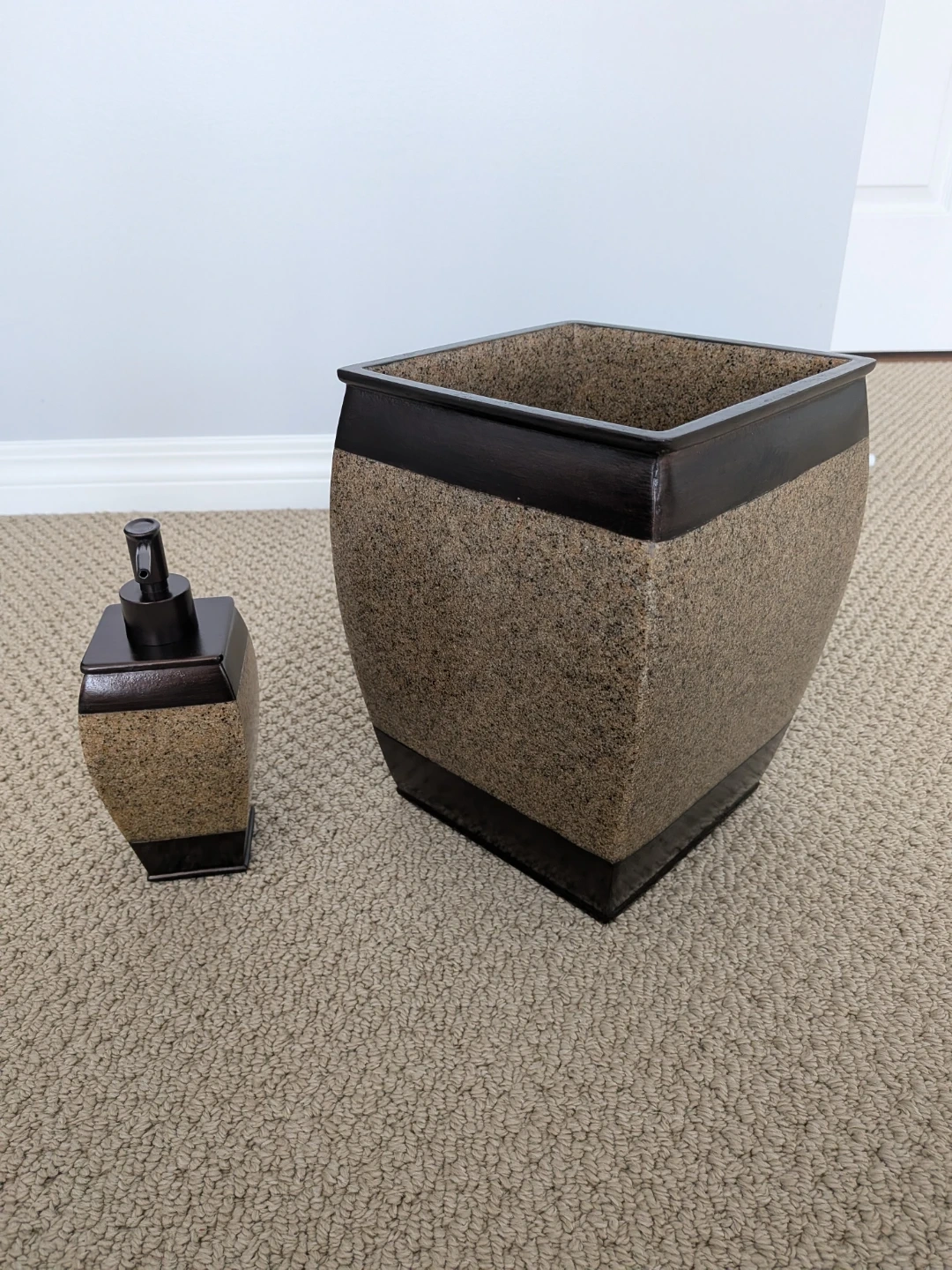 Excellent used condition. No chips or cracks. Minor wear on the bottom of both the basket and the soap dispenser (as seen in photos).