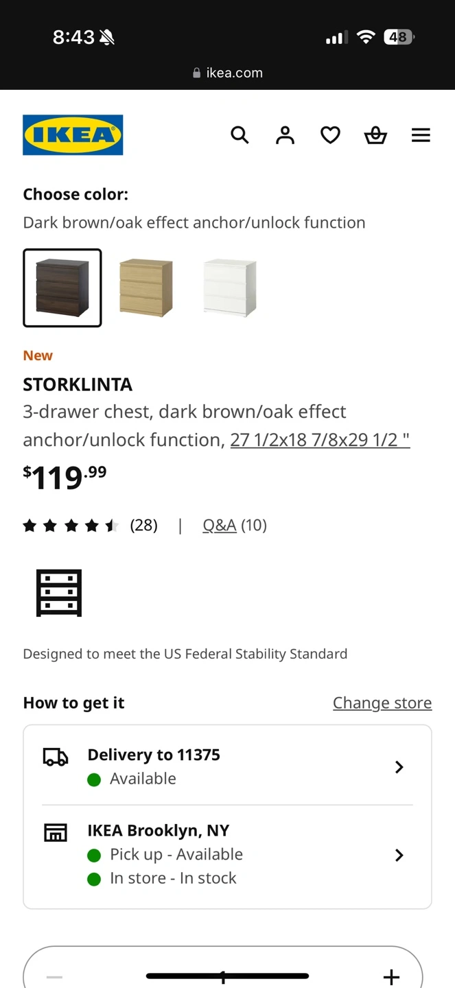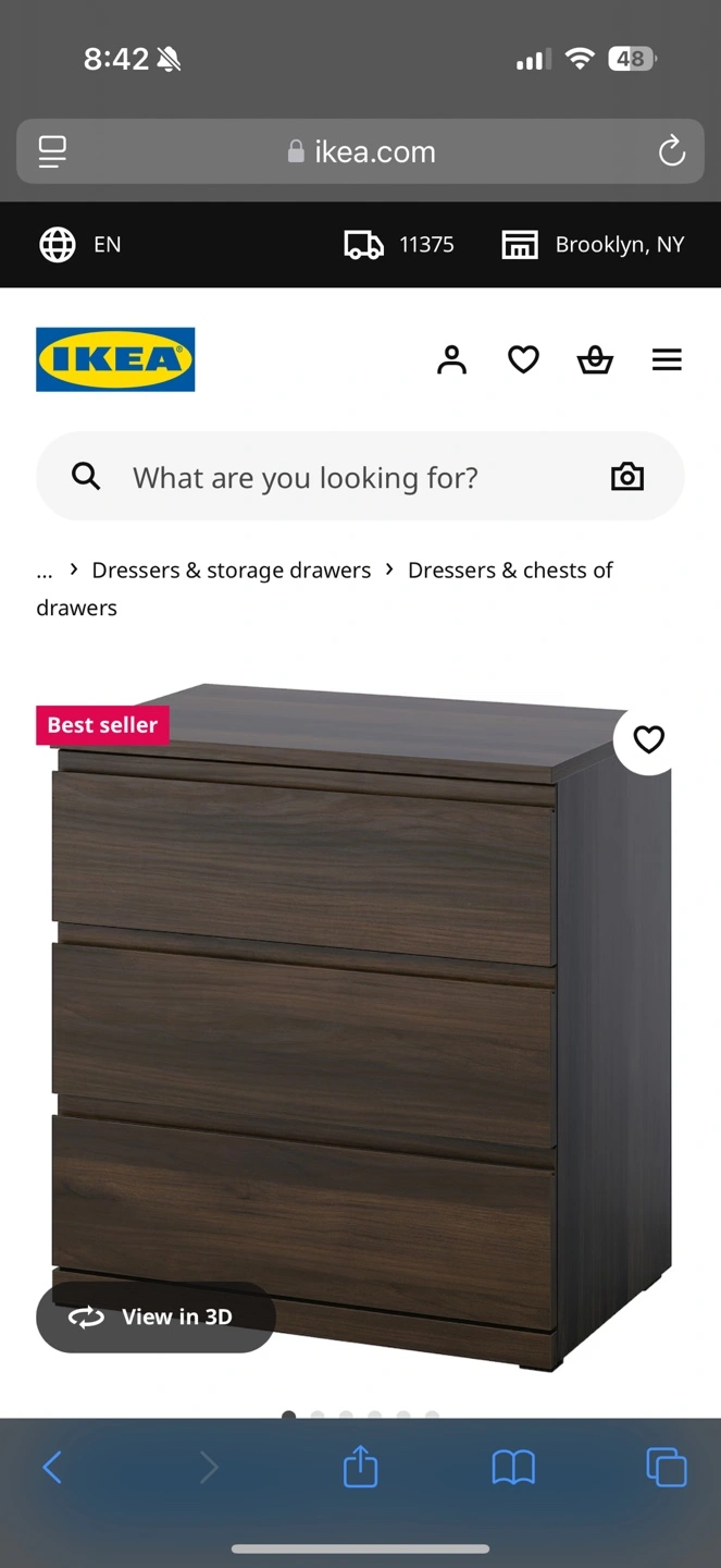 IKEA MALM 3-Drawer Chest - Dark Brown