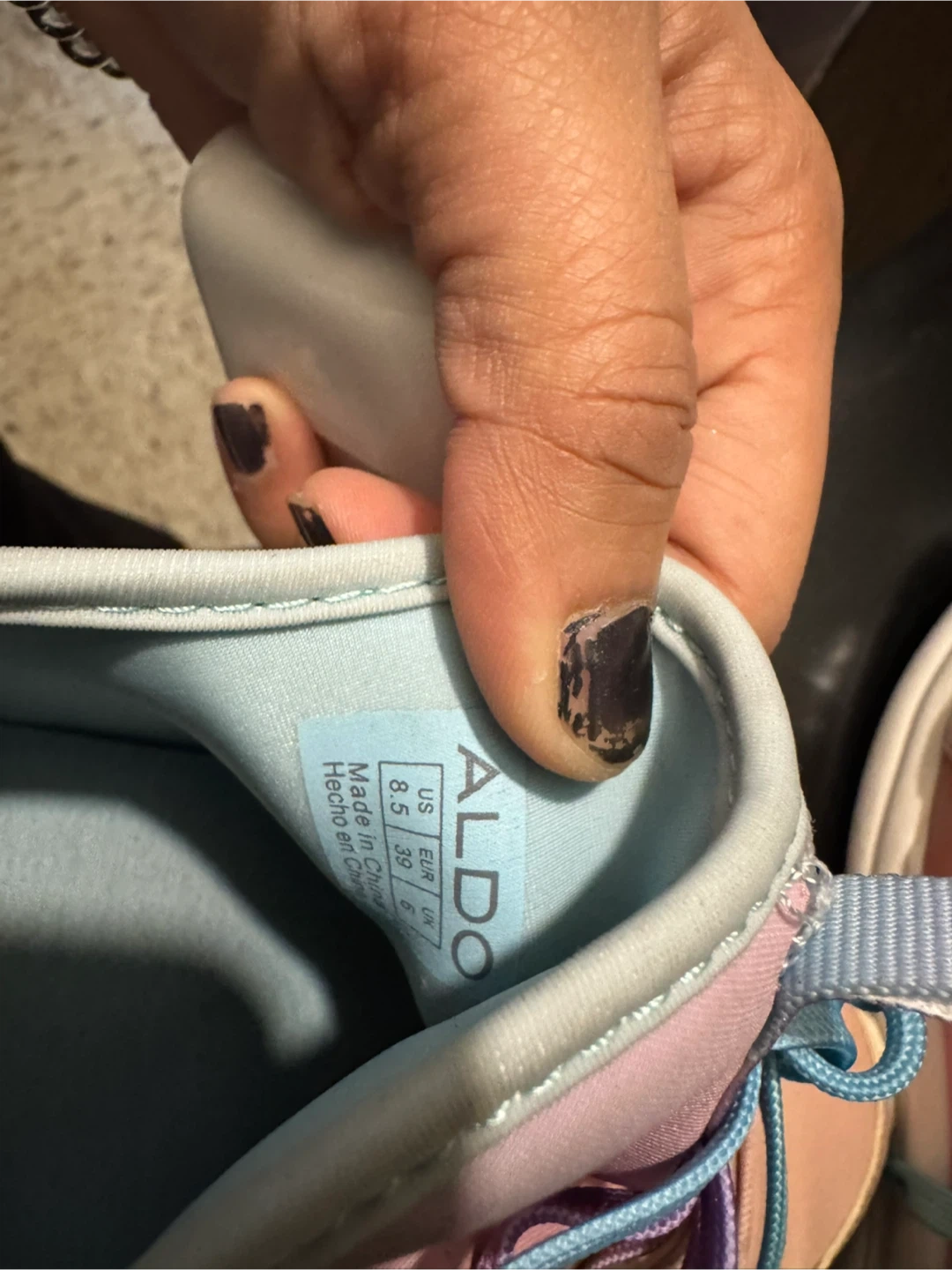 Selling a pair of Aldo sneakers in a lovely pastel colour. They are a women's size 8.5. These are perfect for adding a pop of colour to your outfit!# Cleanout