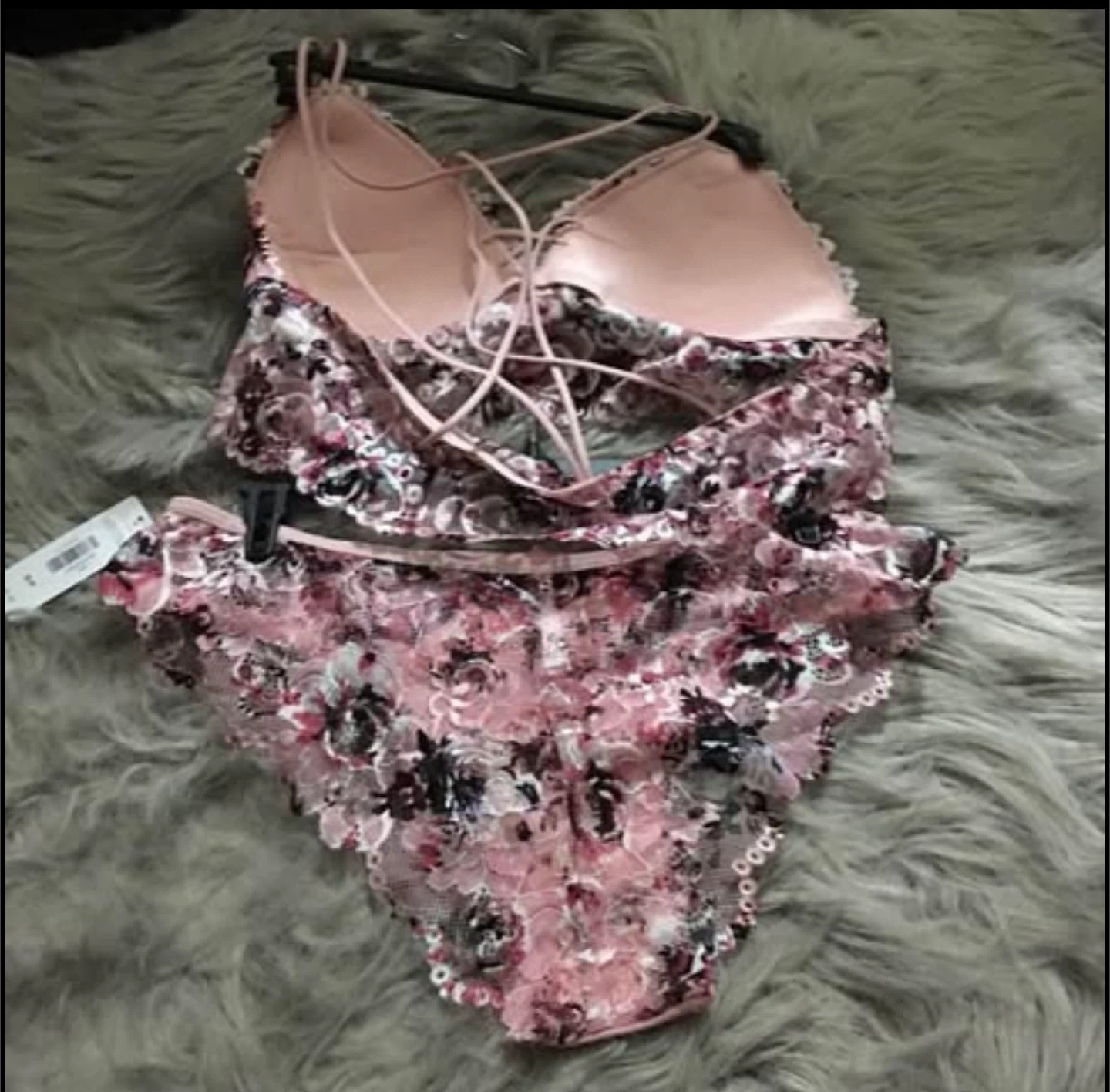 This is a brand-new Rose& Vine floral lace lingerie set, perfect for adding a touch of elegance to your wardrobe. The delicate floral design and intricate lace detailing make it a stunning addition to any collection. This set is new with tags.