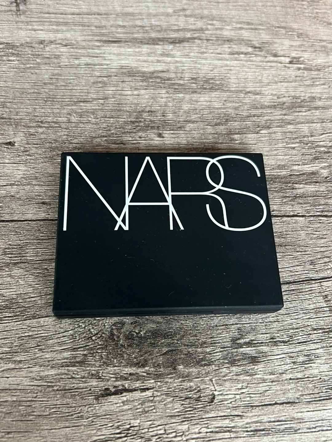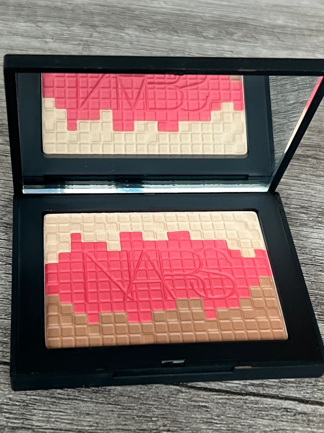 This NARS compact features a blush and bronzer duo. It's designed with a pixelated pattern and the NARS logo embossed on the product. The compact includes a mirror.