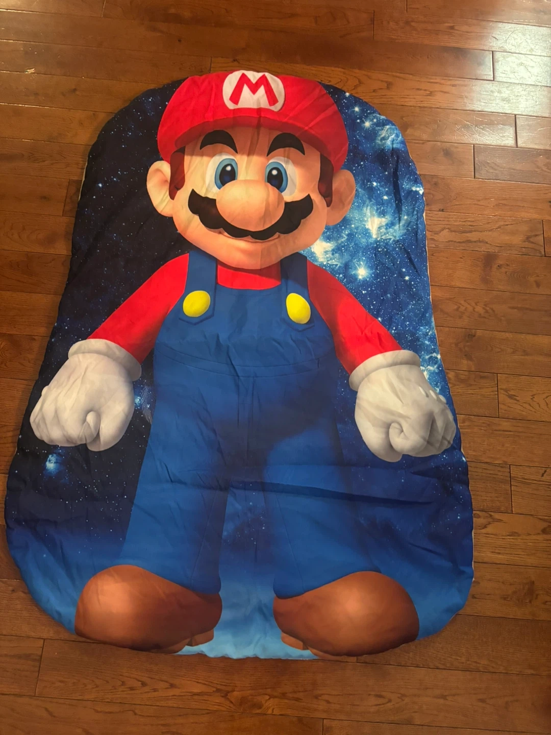 This Super Mario blanket features Mario on a starry background. It's perfect for kids who love the Super Mario franchise. Made with soft, durable material.