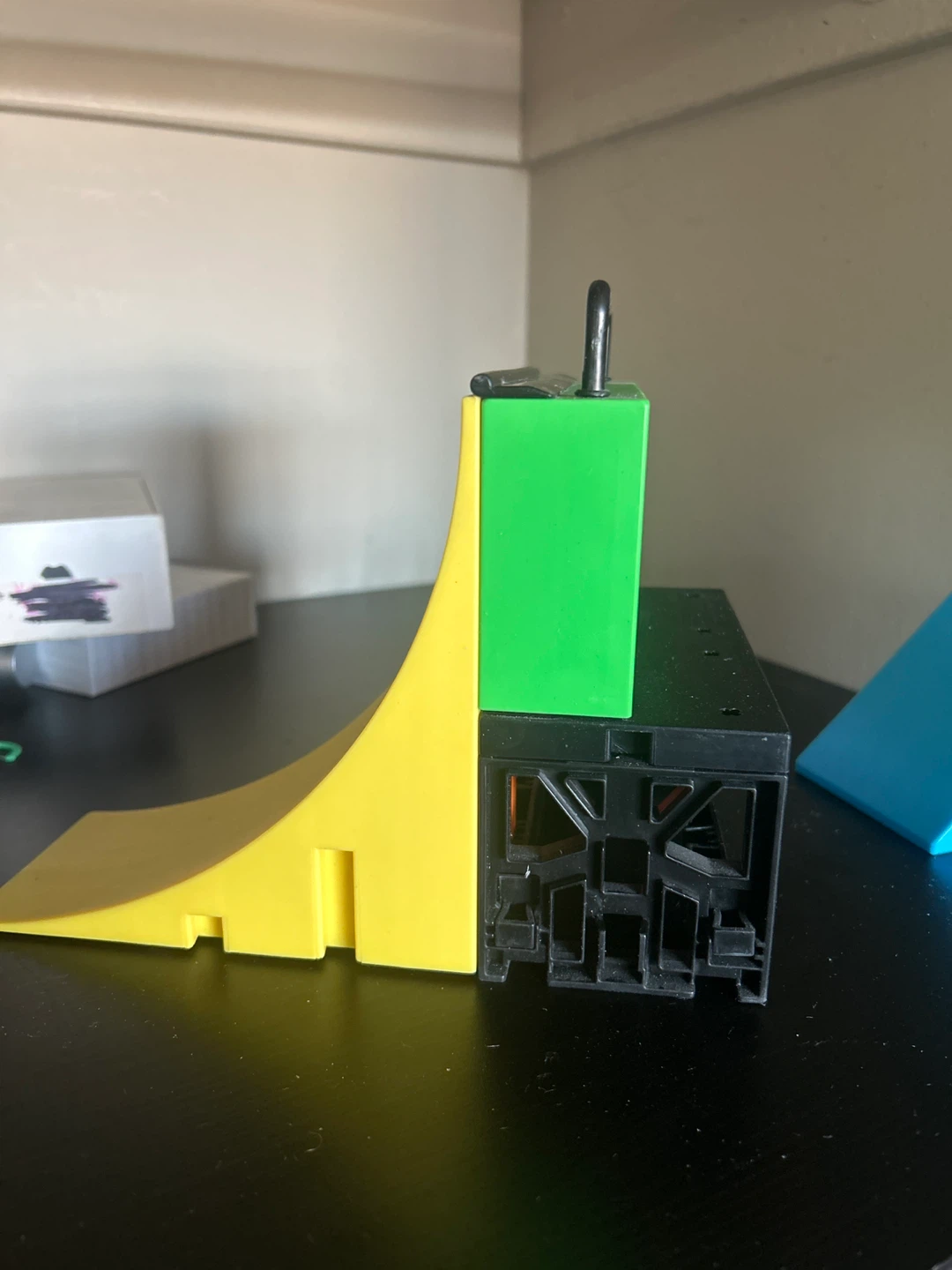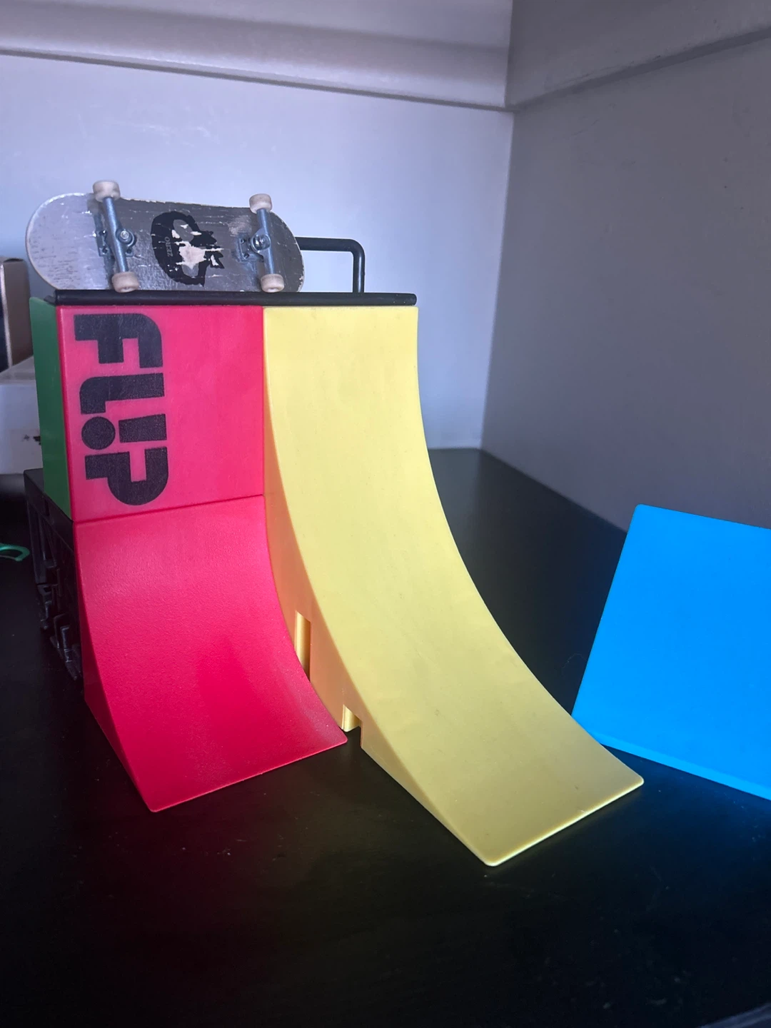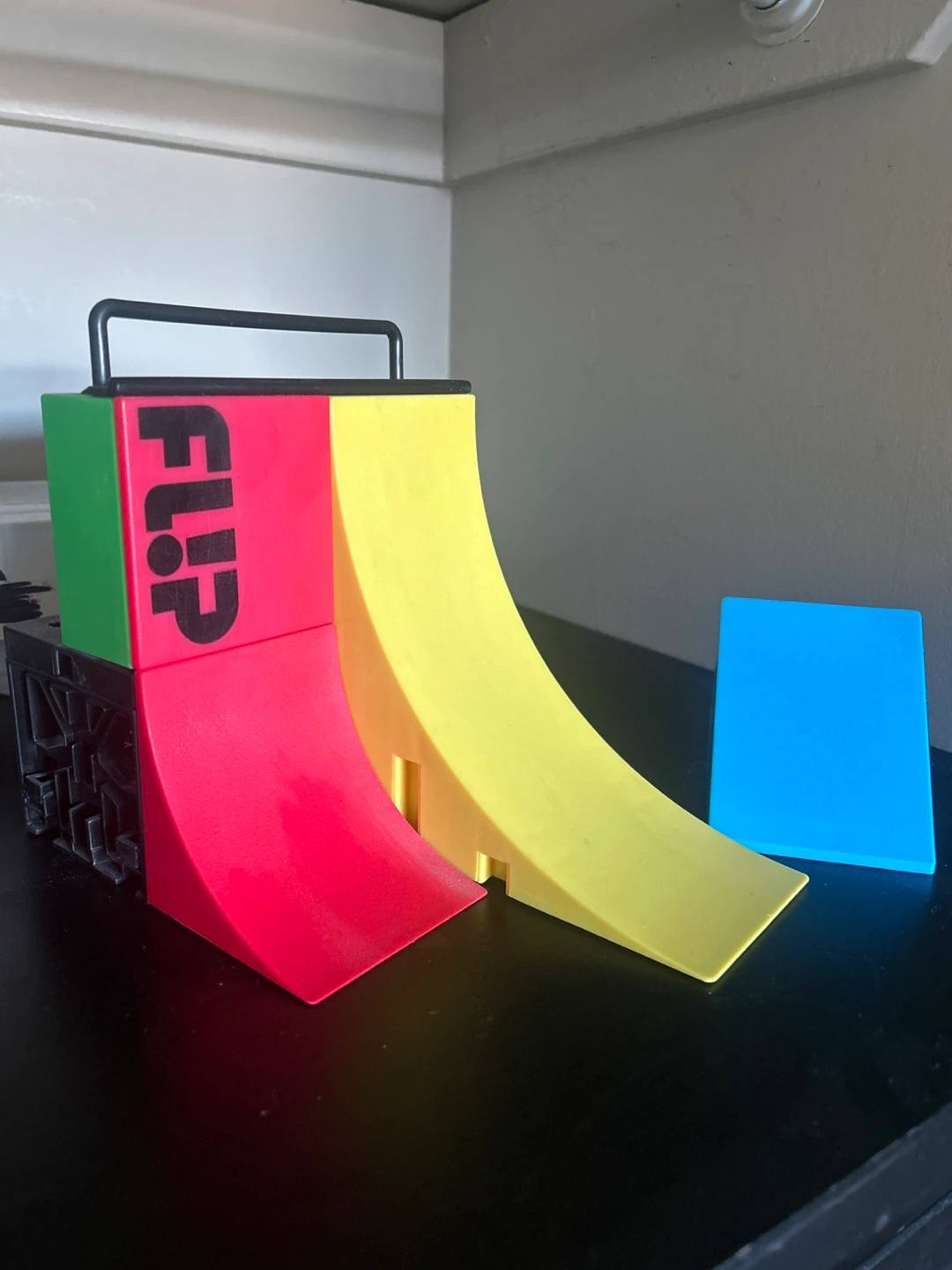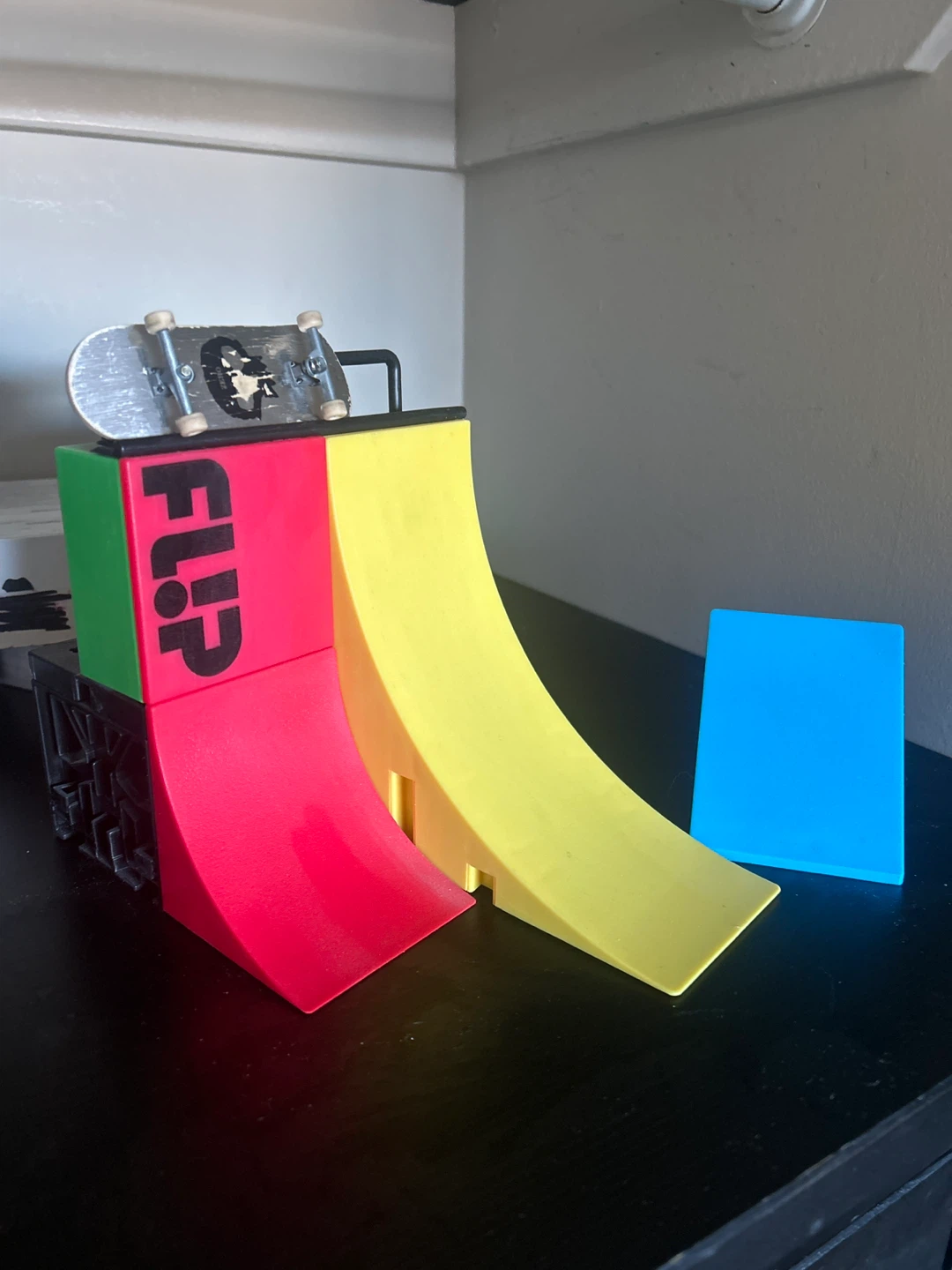 This Tech Deck fingerboard ramp set comes with a ramp and a green riser block. It's made of durable plastic. A great addition for any fingerboard enthusiast!