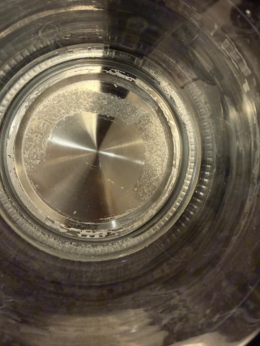 The kettle shows some mineral buildup inside and the spout filter is ripped. Indicator lights don’t work, but the kettle does.