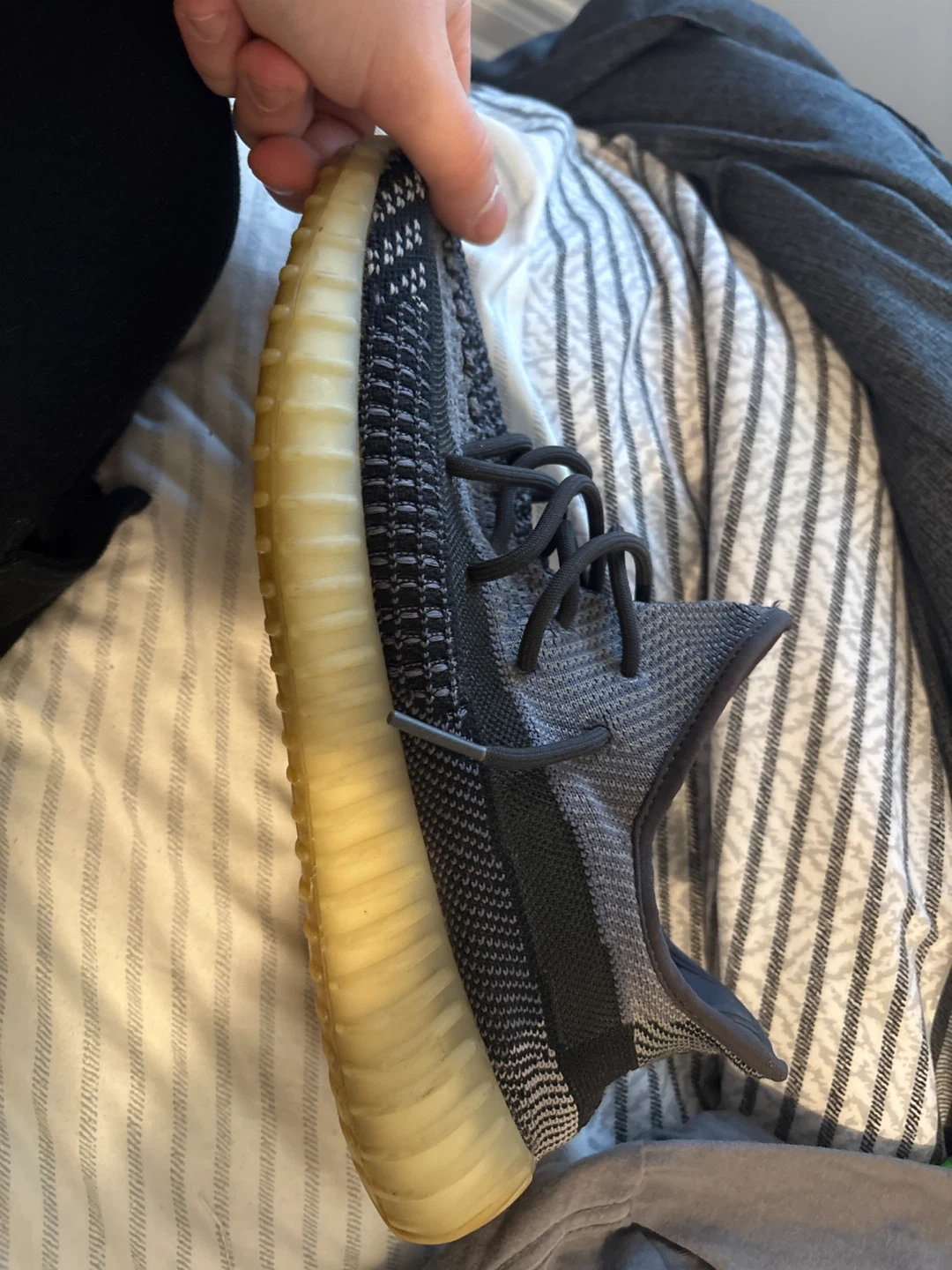 Selling a pair of Adidas Yeezy Boost 350 V2 carbon colourway! These are super comfortable and stylish. Great for everyday wear!