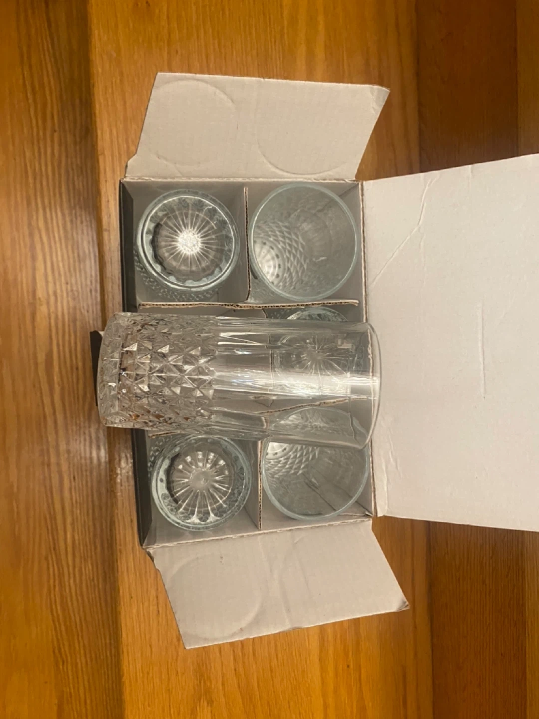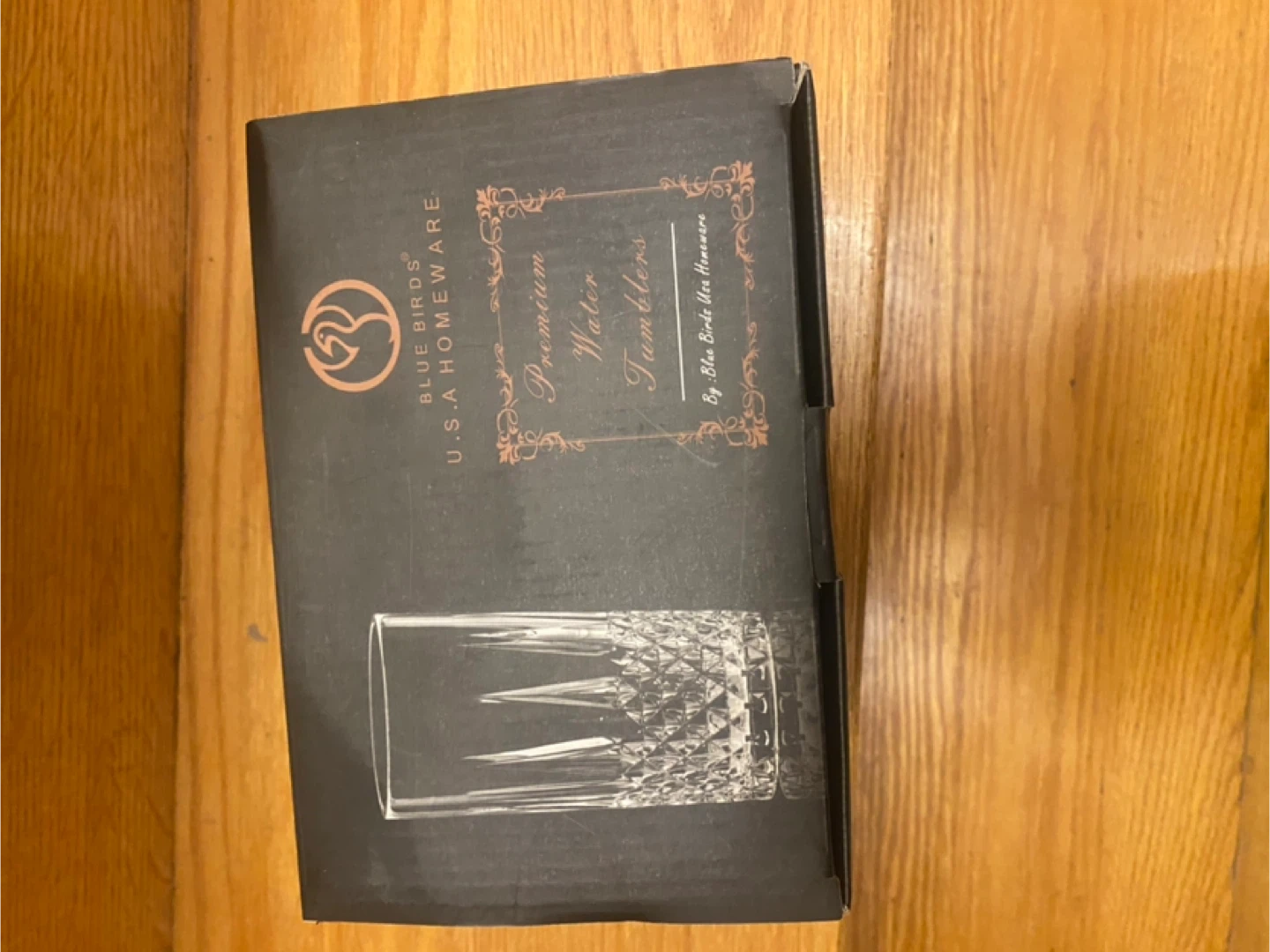 This set includes six premium water tumblers from Blue Birds. They are made of clear glass with a diamond-cut pattern. These tumblers are great for everyday use or special occasions!