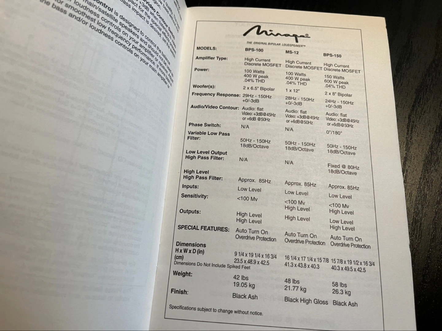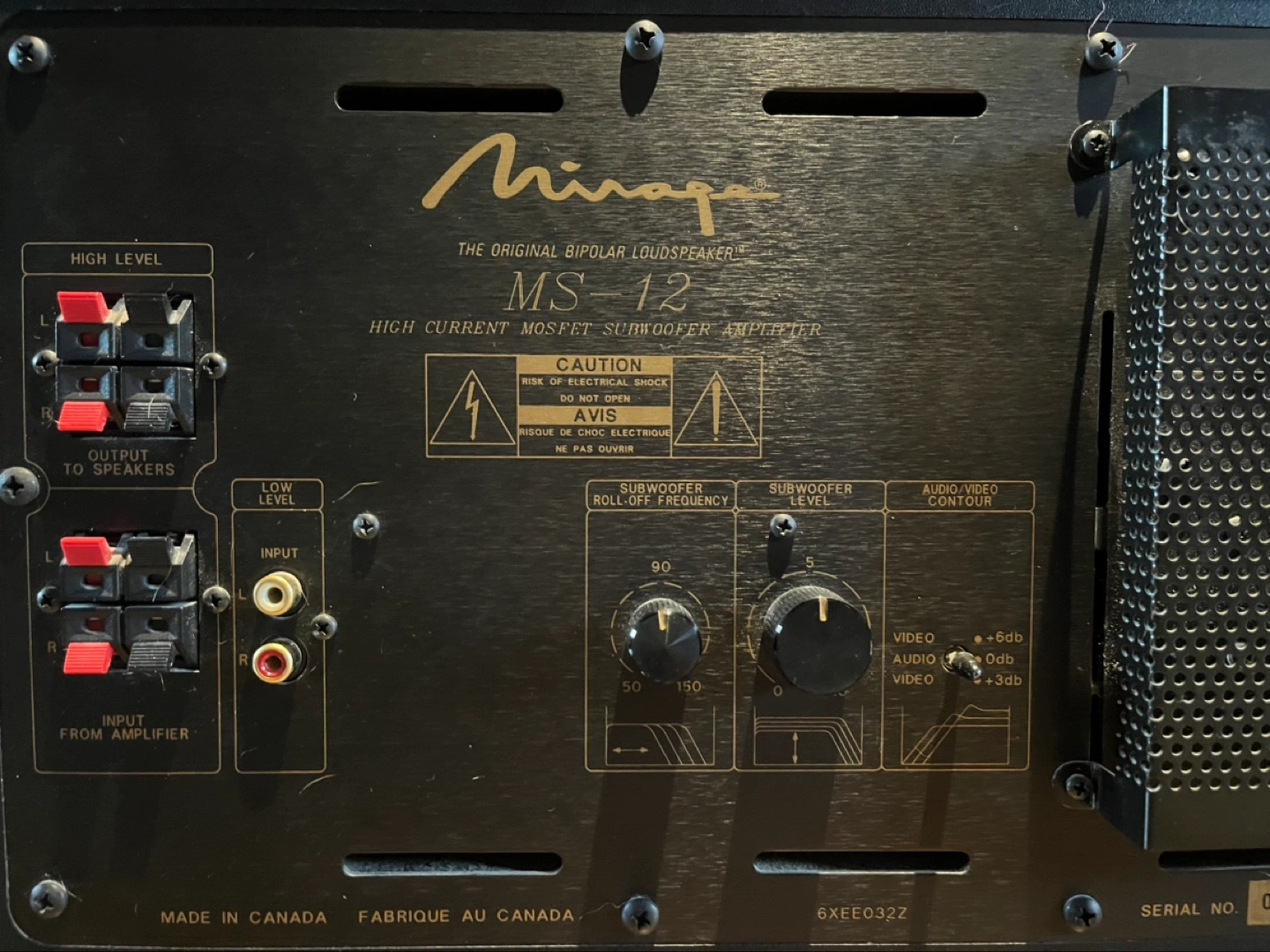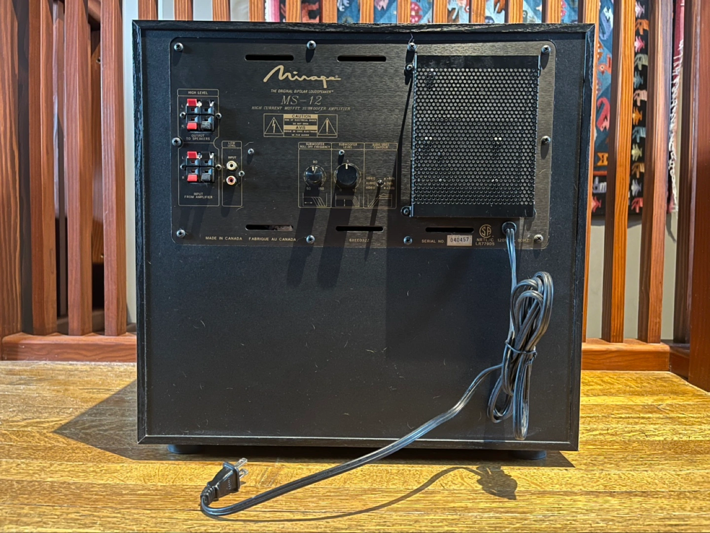 This Mirage MS-12 Subwoofer is in excellent condition, speaker is tight, it was never driven super hard for long periods. And, it's made in Canada!