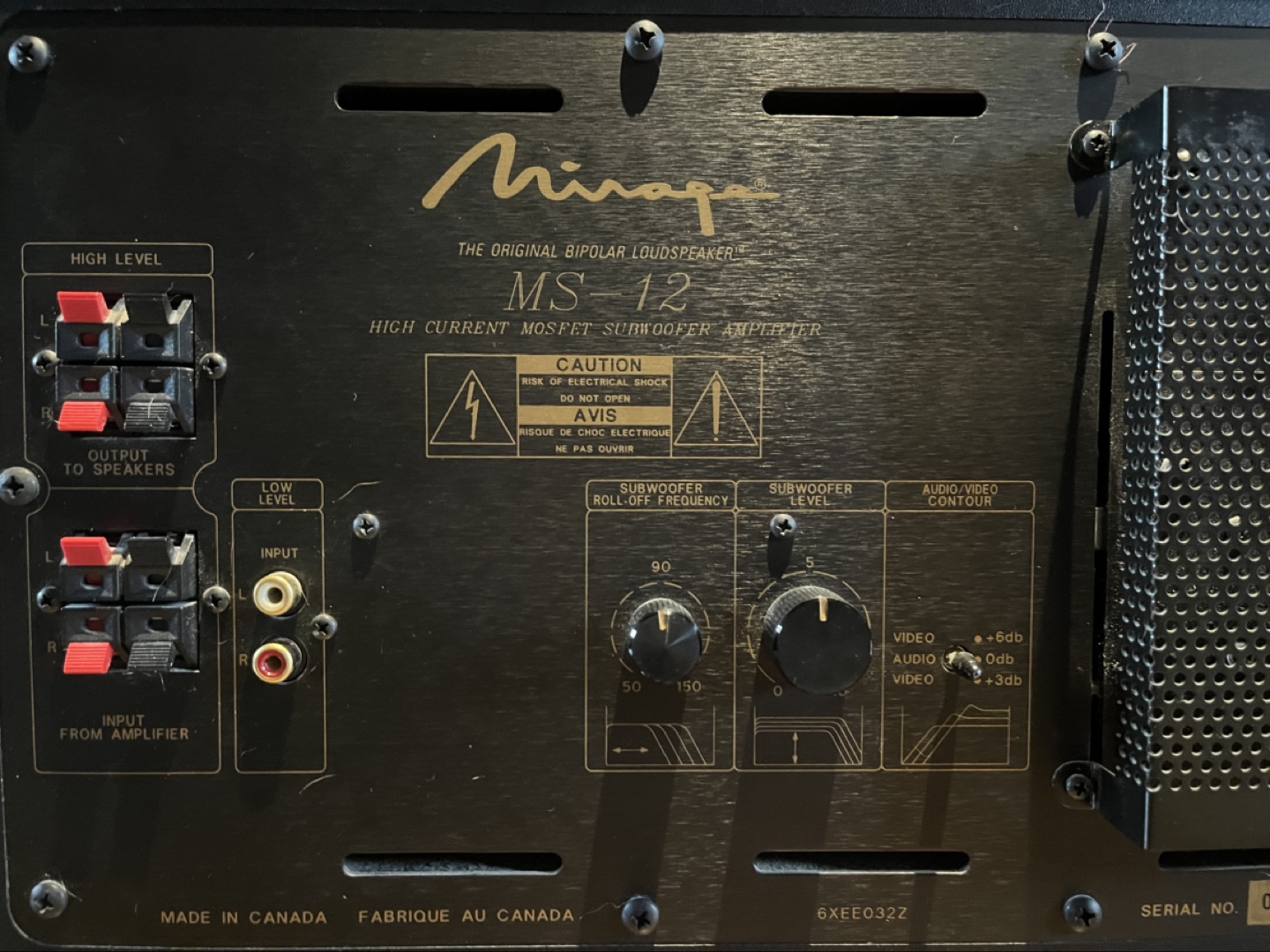 This Mirage MS-12 Subwoofer is in excellent condition, speaker is tight, it was never driven super hard for long periods. And, it's made in Canada!