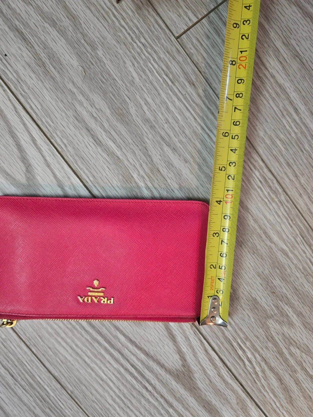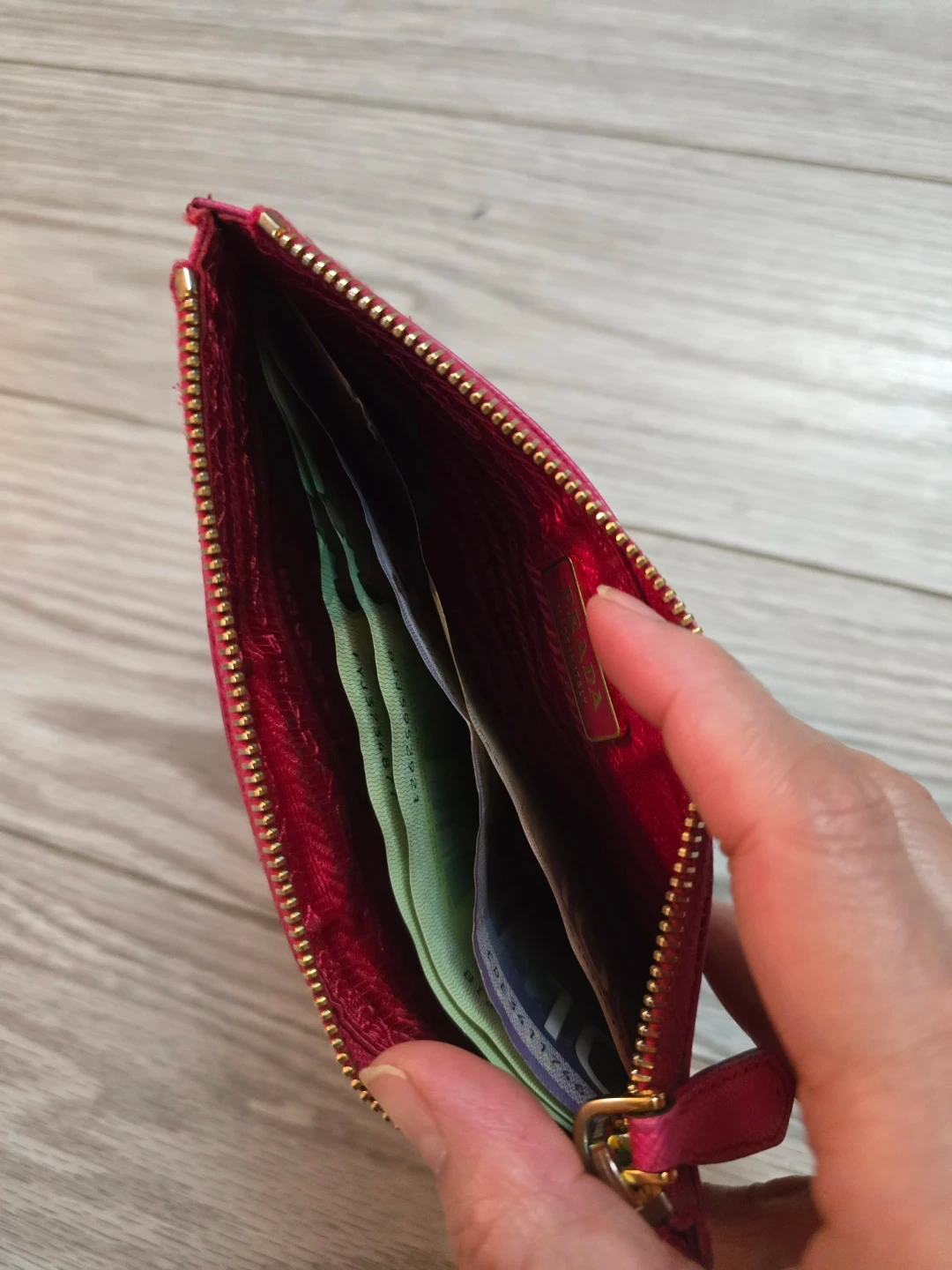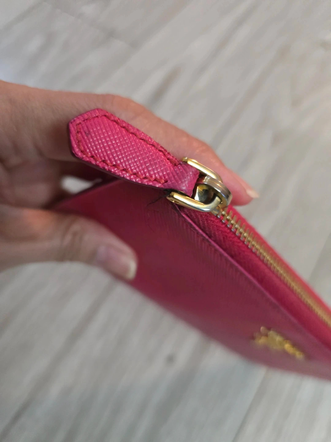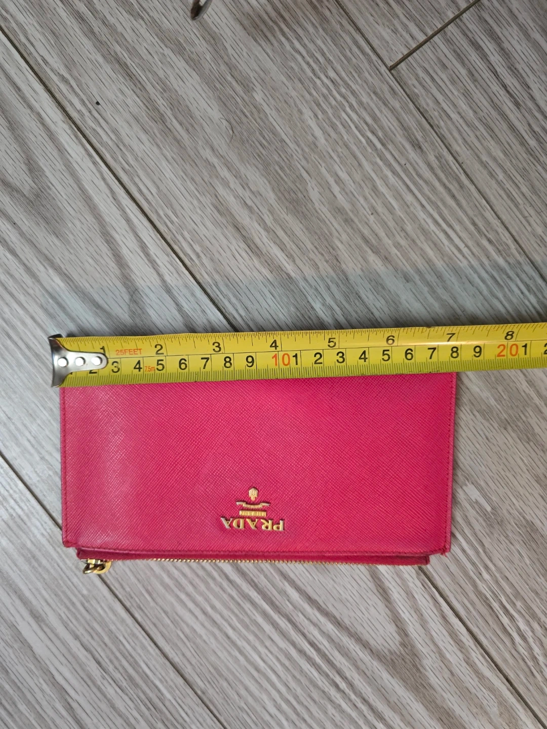 Authentic vibrant pink Prada pouch. Can fit bills. It's made from saffiano leather with gold-tone hardware. This pouch is great for cash and cards and small essentials.