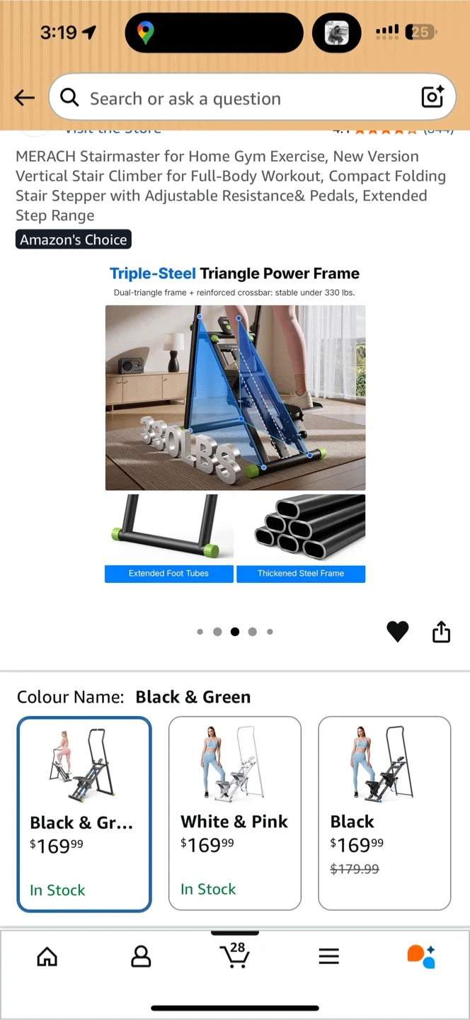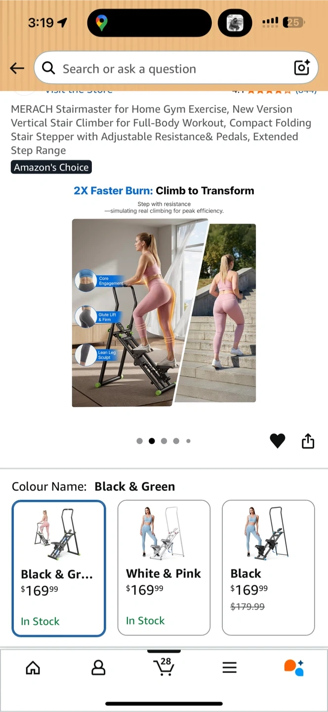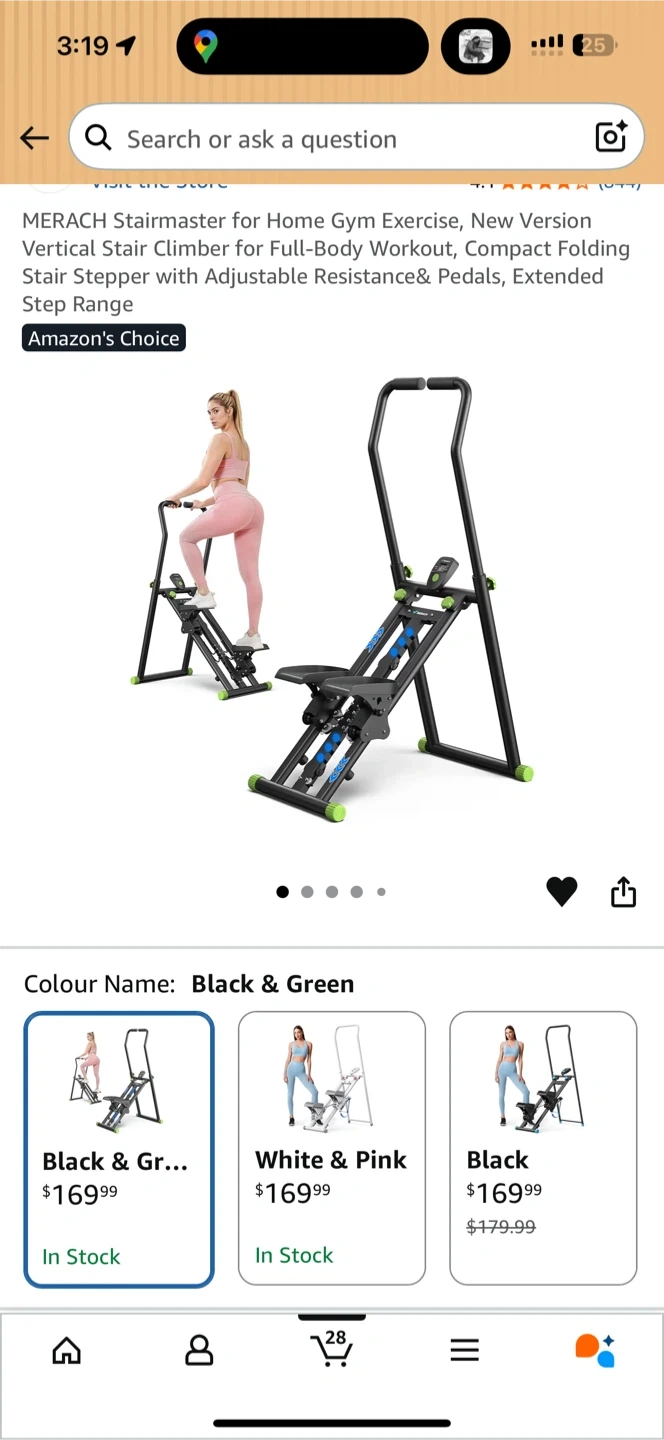This MERACH stair climber is designed for full-body workouts at home. It features an adjustable resistance and pedals with an extended step range. The black and green colour makes it a stylish addition to your home gym.