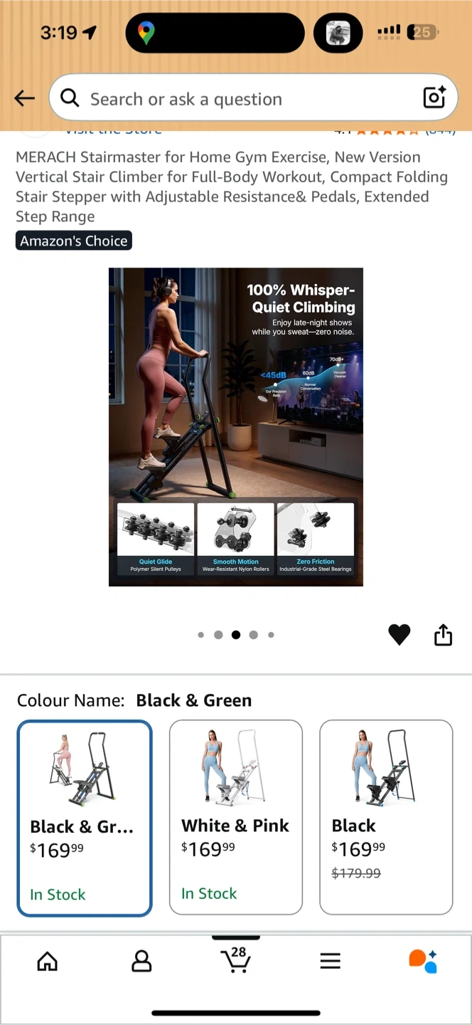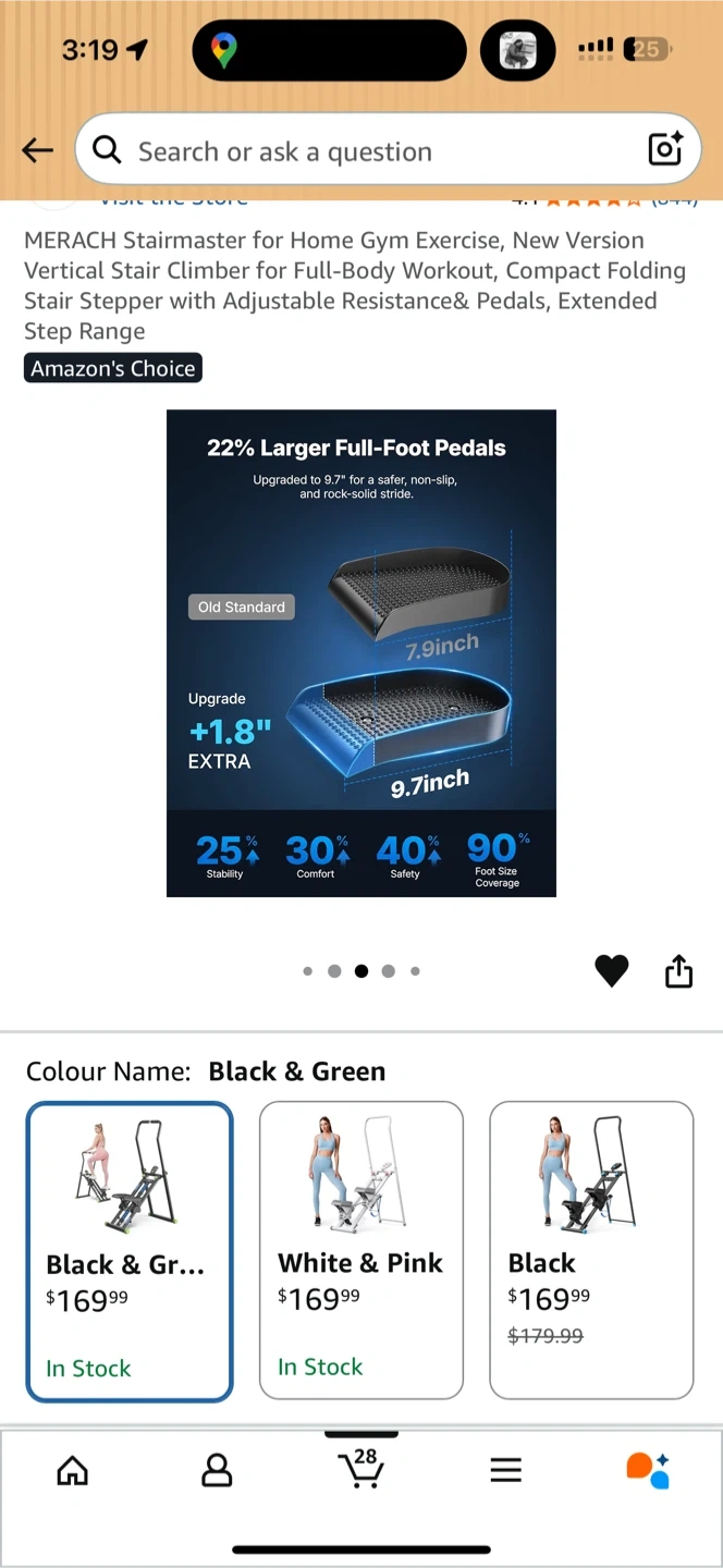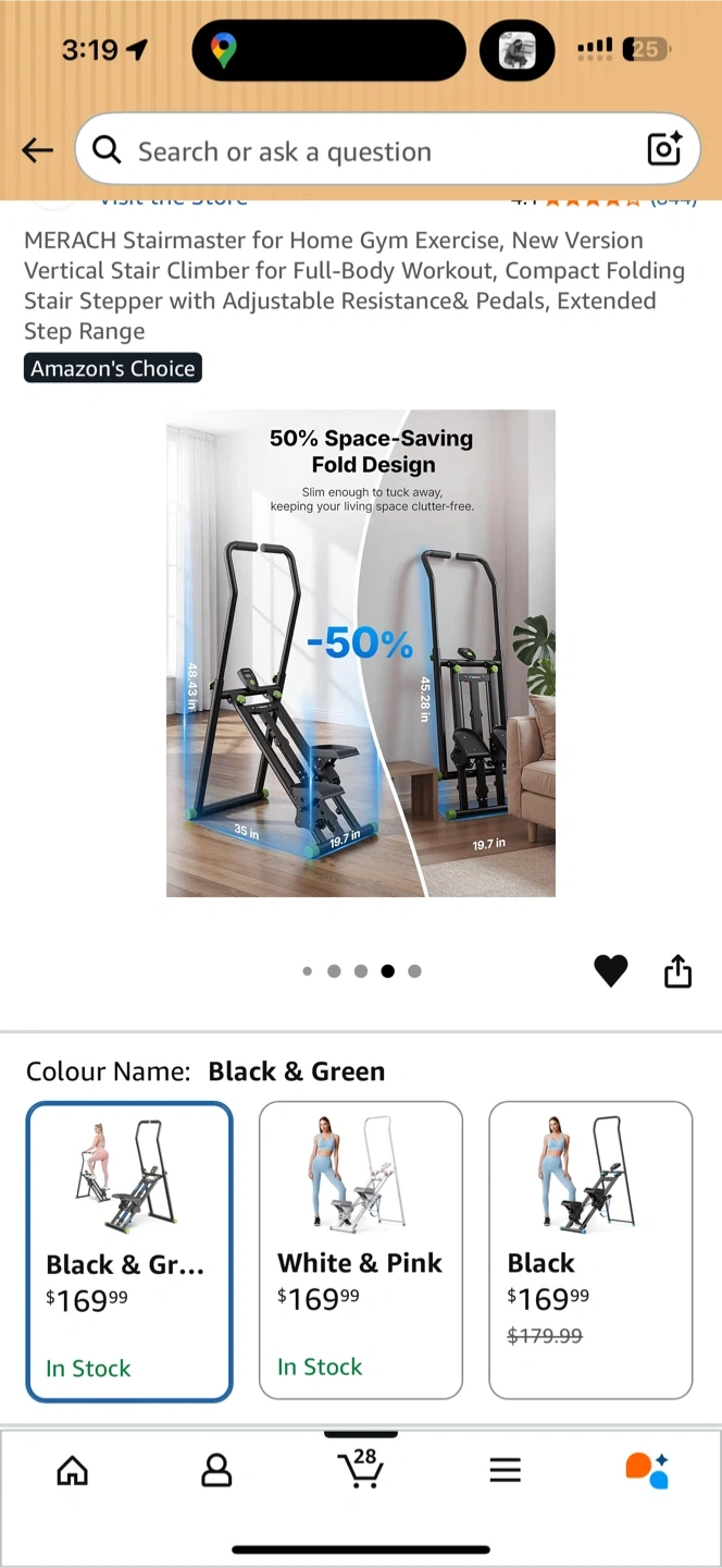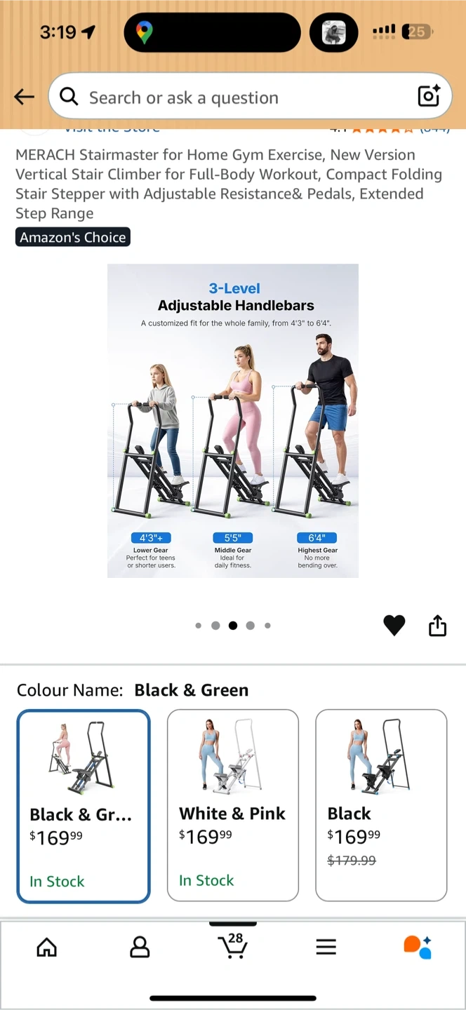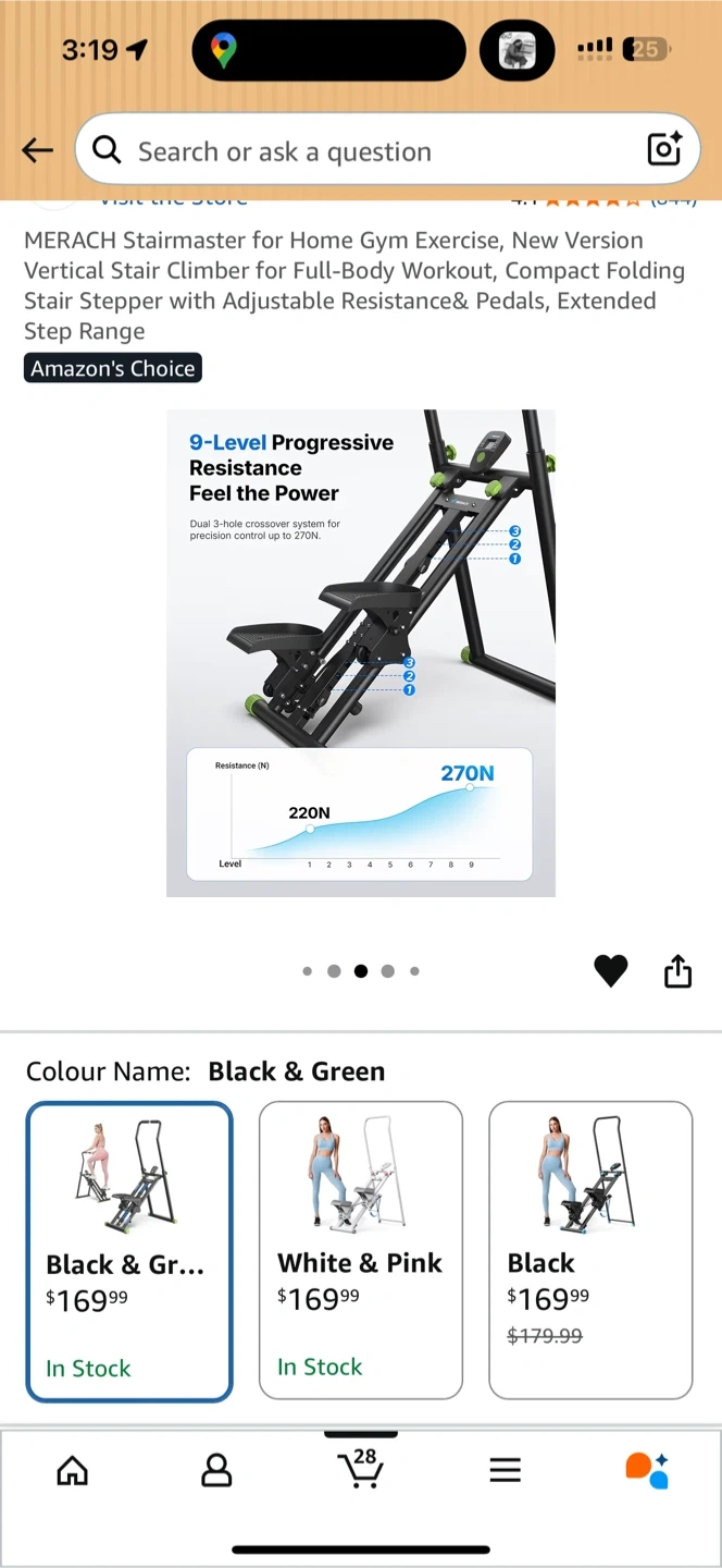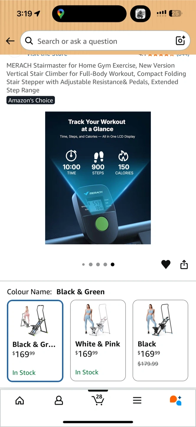 This MERACH stair climber is designed for full-body workouts at home. It features an adjustable resistance and pedals with an extended step range. The black and green colour makes it a stylish addition to your home gym.