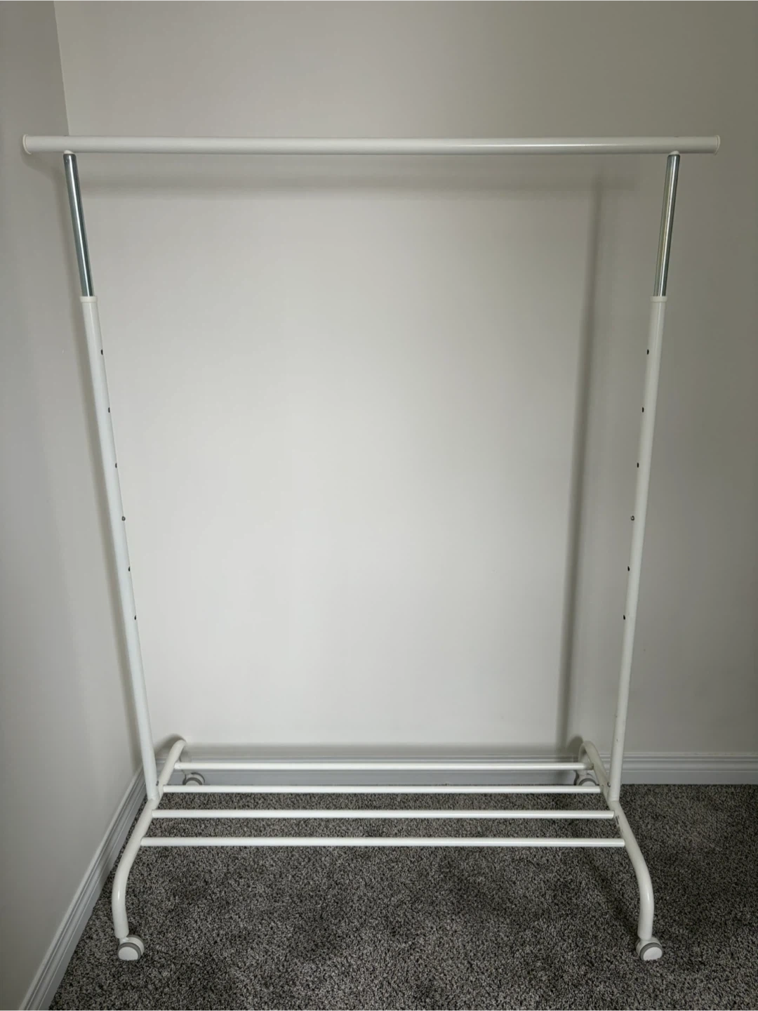IKEA White Rolling Garment Rack with Shelf